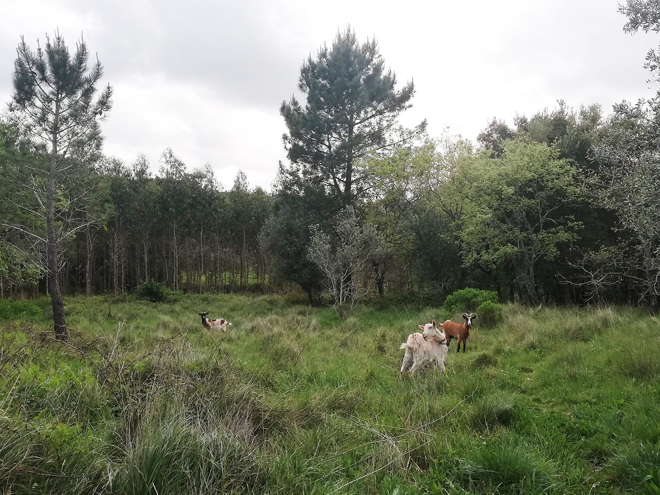 Het is een paar dagen dan wel zonnig geweest, maar ook erg buiig. Als het de hele dag belooft te regenen blijven de geiten binnen in de stal. Vinden ze niet leuk, maar ze hebben ook niet door dat het hard regent. Als het af en toe een beetje regent gaan ze naar de kraal, daar kunnen ze zelf kiezen of in het schuilhutje gaan staan of dat ze gaan grazen. Als het dan een hele dag droog lijkt te gaan worden gaan ze het land op en ze dat kunnen doen na een paar dagen binnen gestaan te hebben zijn ze uitgelaten. Misschien dat het voorjaar op komst ook een beetje meespeelt, het zou kunnen dat ze daar ook wat onrustig van worden. Ze zijn in ieder geval enthousiast om weer naar buiten te mogen en in het veld te kunnen staan.