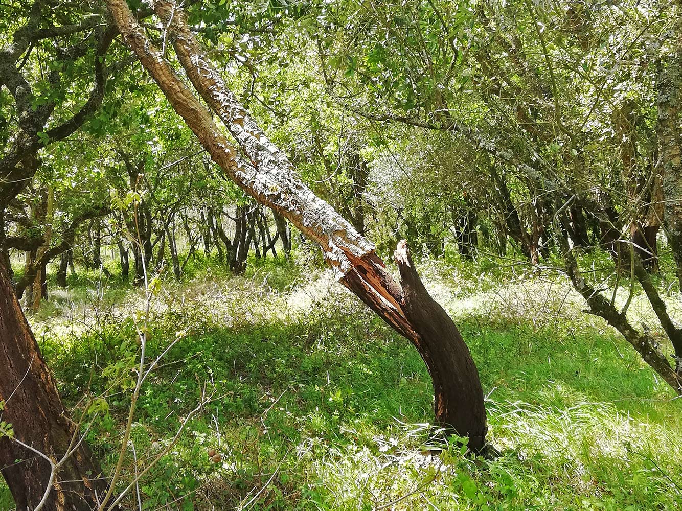 Het lijkt fantastisch mooi weer en eigenlijk is het dat ook. De zon schijnt stralend. Maar het waait enorm. Er raast een storm over Portugal. Zelfs de vuilnisbakken waaien om. De plastic stoelen die buiten staan, althans horen te staan, liggen verspreid door de tuin. In het bos achter ons heeft een boom het begeven. Eigenlijk wel raar, de boom staat midden tussen andere bomen, terwijl die allemaal nog staan. Op het eerste gezicht is het ook een gezonde boom. Stond zeker net op een plek waar de wind harder is dan op andere plekken. De schade is verder beperkt tot deze ene boom.