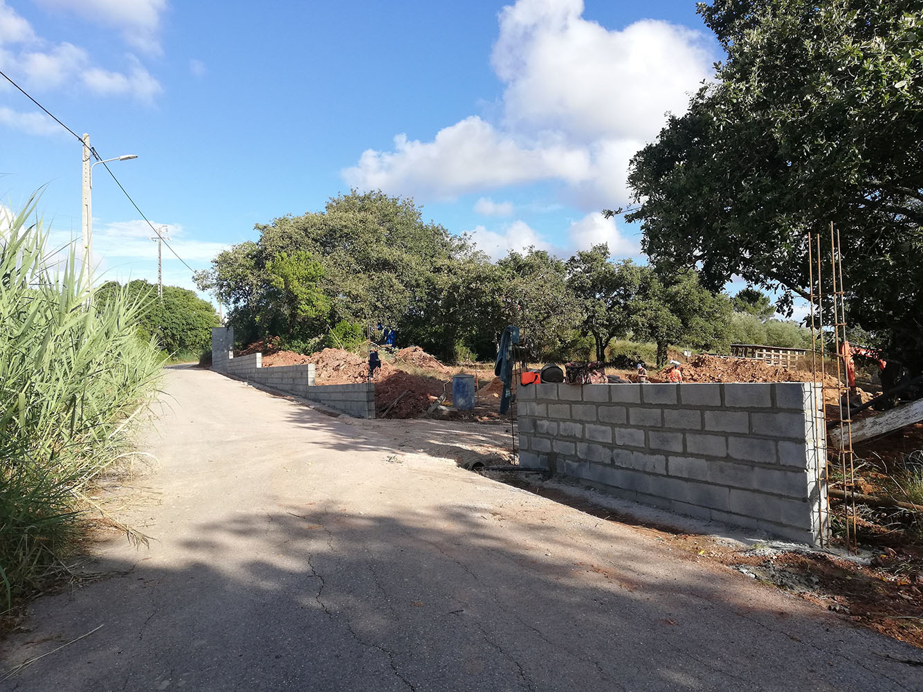 Langs het weggetje, een stukje verder naar beneden, als je ons huis voorbij bent verschijnt ineens een muur. Het is op de plaats waar Dora en haar man varkens hielden. Het is ontstaan uit hobby, maar het begint nu wel serieuze vormen aan te nemen. Het is jammer want de muur neemt he landelijke karakter een beetje weg, maar we mogen niet klagen want ons terrein wordt ook van de weg gescheiden door een muur. Onze muur is hoger dan deze muur wordt want hier komt een hek op, dus dan kun je er nog doorheen kijken.