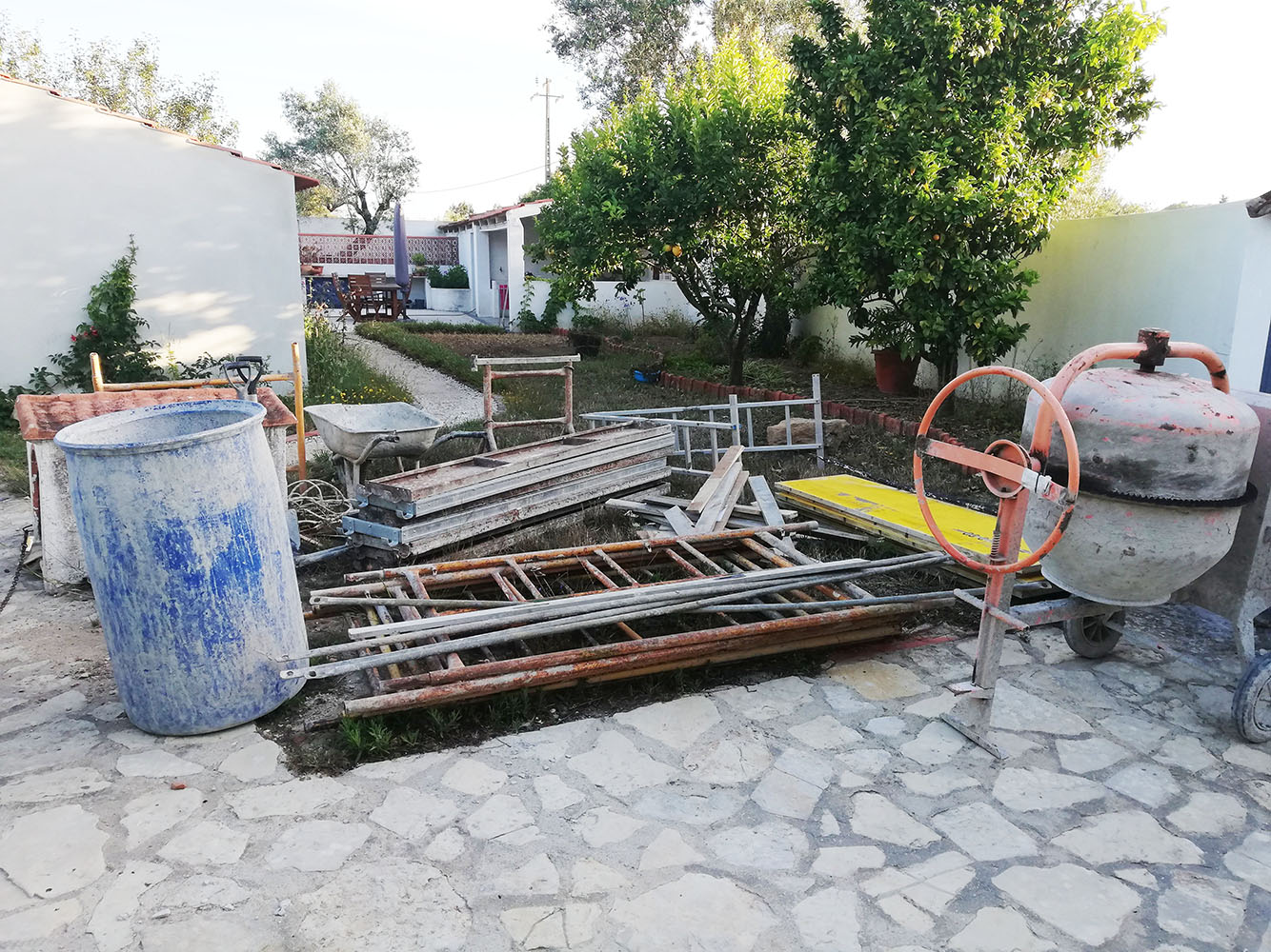 ´t Gaat beginnen. Eindelijk dan. We zitten er al teen tijdje op te wachten, maar nu wordt het echt. Rui heeft de spullen gebracht om morgenochtend direct aan de verbouwing van het appartement te kunnen beginnen. ´t Was nog even wat, want hij stond onaangekondigd aan de deur en wij waren er niet. We zaten in Caldas om tegels uit te zoeken. Rui is als de dood voor honden dus hij durfde niet naar binnen. Hij belde Leonel en Marijke die ons dan weer belden. Dat ging natuurlijk ook niet meteen goed want in een volle bouwmarkt hoor je de telefoon niet altijd. Uiteindelijk is Leonel erheen gegaan en hij heeft de poorten geopend, zodat Rui naar binnen kon. Rui kon ze zelf ook openen, ze stonden niet op slot, maar hij wist niet of de honden aan die kant van het terrein konden komen. Als hij nu had aangekondigd dat hij zijn spullen zou komen brengen dan waren we op tijd thuis geweest. Tja, als.