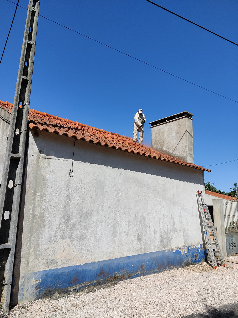 Het appartement staat vol in de belangstelling en terecht, er gebeurt ook een hoop. De schilder was al een tijdje geleden besteld. Maar Corona en andere werkzaamheden stonden een beetje in de weg, maar nu is hij begonnen. Dat het appartement niet gedaan kon worden, dat wisten we al, hij zou al het schilderwerk in tweeën doen, maar nu kan het misschien achter elkaar door. Eerst maar het dak op, hij gaat het helemaal schoonmaken en de pannen impregneren, dan gaat hij de scheurtjes en deukjes in de buitenmuren herstellen.