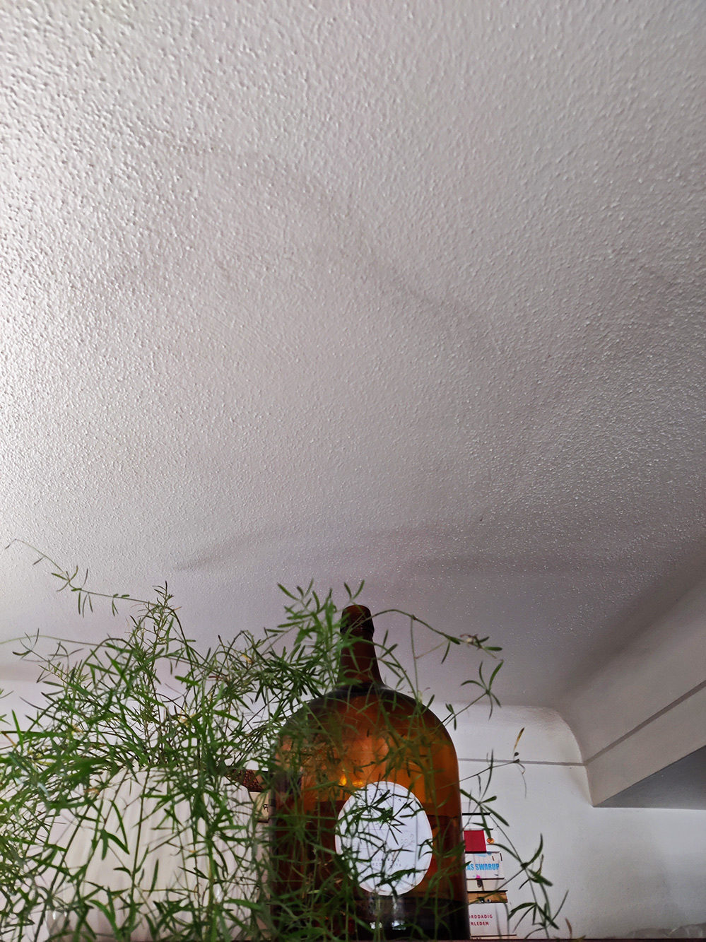 In de winter brandt de kachel en hoewel het een gesloten systeem is komt er toch roet vrij, dat slaat dan neer op het plafond en de muren. Als je er niets aan doet zie je het eigenlijk niet goed, want het gaat gelijkmatig, maar als je er met een vochtige doek langsgaat zie je ineens de strepen en dan valt het op hoe zwart het eigenlijk is.