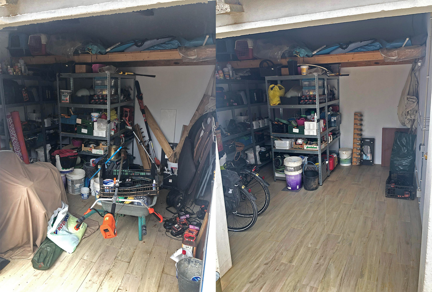 Opgeruimd staat netjes! Dat is nu wel heel letterlijk. Met Marijn zijn er extra handen en daarom kon de bezem er flink door. Als er wordt geklust en gedaan worden de spullen wel eens snel teruggezet en na verloop van tijd loopt de boel vol. Wat laders van elektrisch gereedschap op de grond, de kruiwagen met spullen even gauw teruggezet, want je weet nooit of het gaat regenen, en de volgende dag zijn er alweer andere belangrijke dingen waardoor het opruimen even vergeten wordt. Op zo’n dag even alles eruit en weer netjes terug ziet er toch wel een heel stuk beter uit.