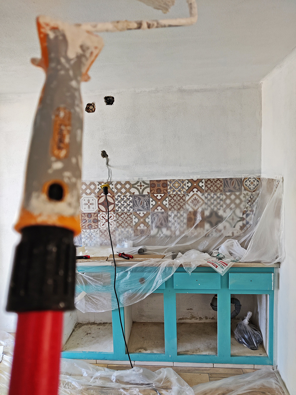 Gelukkig kunnen we het schilderen zelf (nou ja Amanda), dan kan het tempo erin blijven ook al zijn de mannen er even niet.