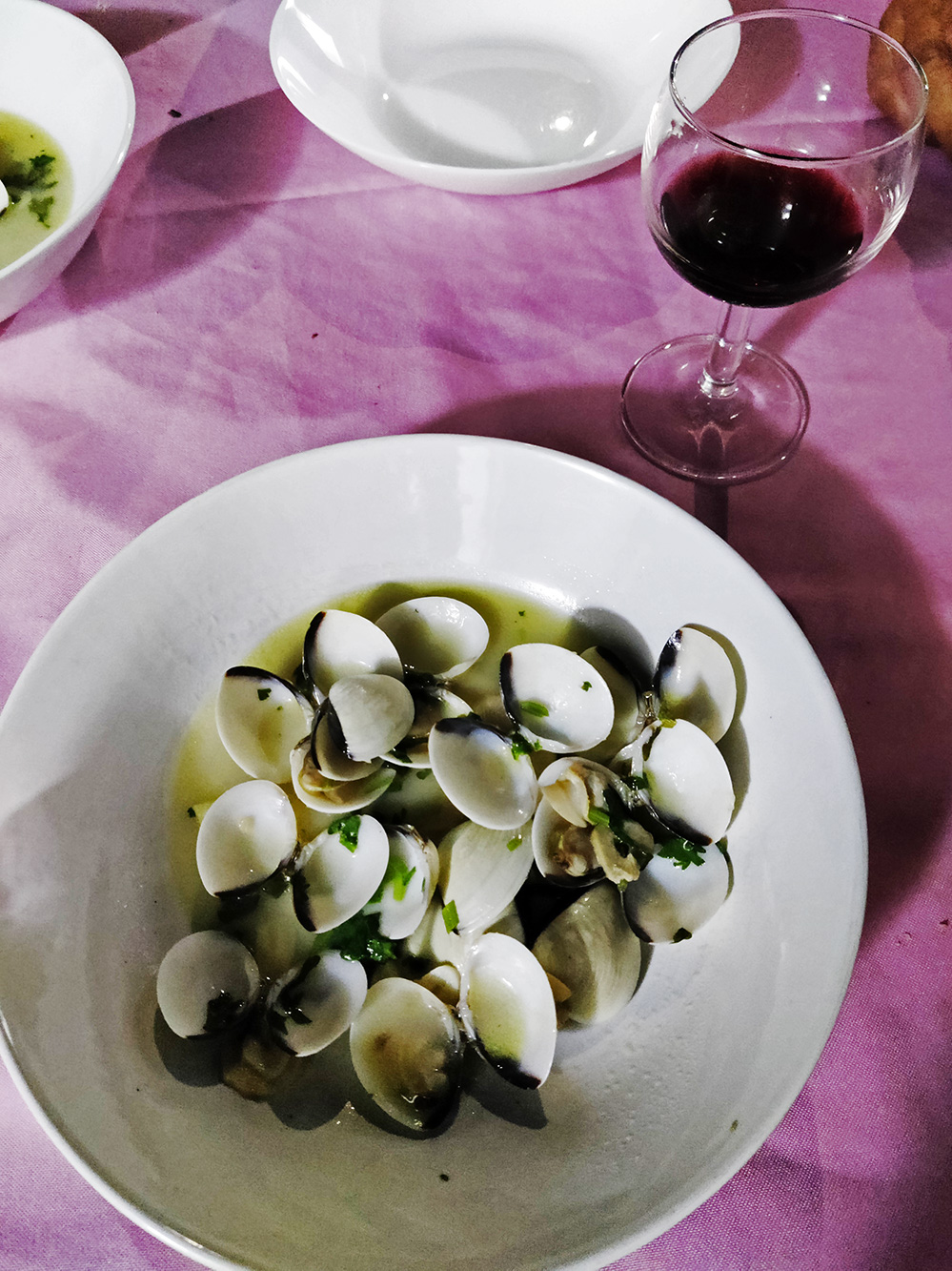 Verjaarsfeestjes in Portugal bestaat uit eten en lekkere hapjes (waar niet trouwens) en hier waren onder meer schelpjes. De lekkernij is bijzonder klein, je eet het zo ongeveer met een tandenstoker of soms zelfs een speld.