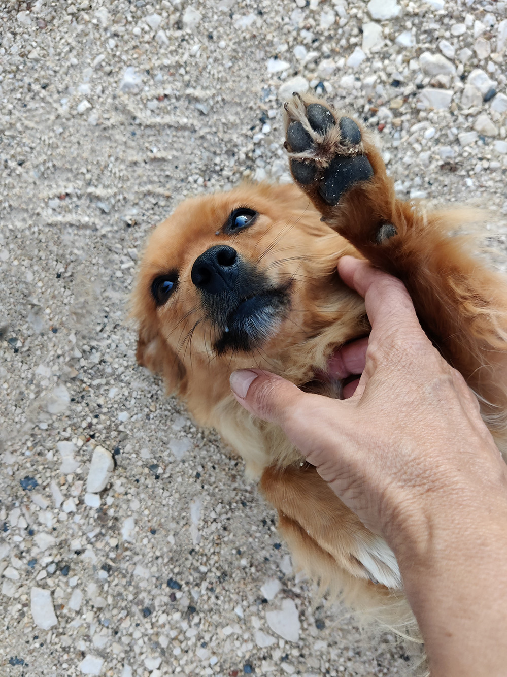 Op het vaste rondje dat we met de honden wandelen, komen we altijd Nina tegen. Het is het hondje van de Braziliaanse buren die naast Avelino wonen. Ze is meestal alleen want de buren werken overdag. Ze vindt het heel gezellig, dat langslopen. Tomás en Milan verwelkomen haar altijd met een hoop geren en schijngevechten. Karma houdt ook graag een oogje in het zeil. Meestal komt Nina kwispelstaartend aangerend. Ze wordt dan even geknuffeld en ze krijgt wat van de hondensnoepjes. Ze gaat helemaal op haar rug en laat het lekker over haar heen komen. ’t Grappige is dat als we de hoek om zijn en het terrein vanaf de andere kant kunnen zien ze ineens beschermend is. Ze komt keffend op Tomás en Milan toegerend en jaagt ze het erf af.