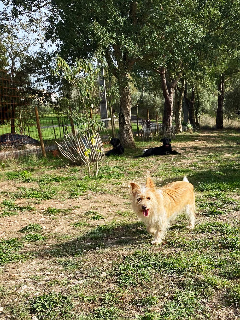 Gisteravond zijn Bronti en Branco aangekomen en ze vallen meteen met de neus in de boter. Roy is opgenomen in het ziekenhuis en dan moet er wat met hond Lester gebeuren. Het ging allemaal een beetje paniekerig. Amanda was al weg voordat Bronti en Branco op waren en toen alles een beetje geregeld was kwam ze terug met Lester. Het moet even wennen met onze honden. Ze kennen elkaar wel, want Roy is al vaak langs geweest met Lester. Er wordt dan druk gerend en gedaan, maar nu is Lester een blijvertje, tenminste voor een paar dagen. Na de eerste intense hernieuwde kennismaking keert de rust weer terug en kunnen ze met z’n allen een beetje uitrusten. Voor Lester allemaal spannend, zo zonder Roy in een relatief vreemde omgeving, maar het went ook wel weer snel.