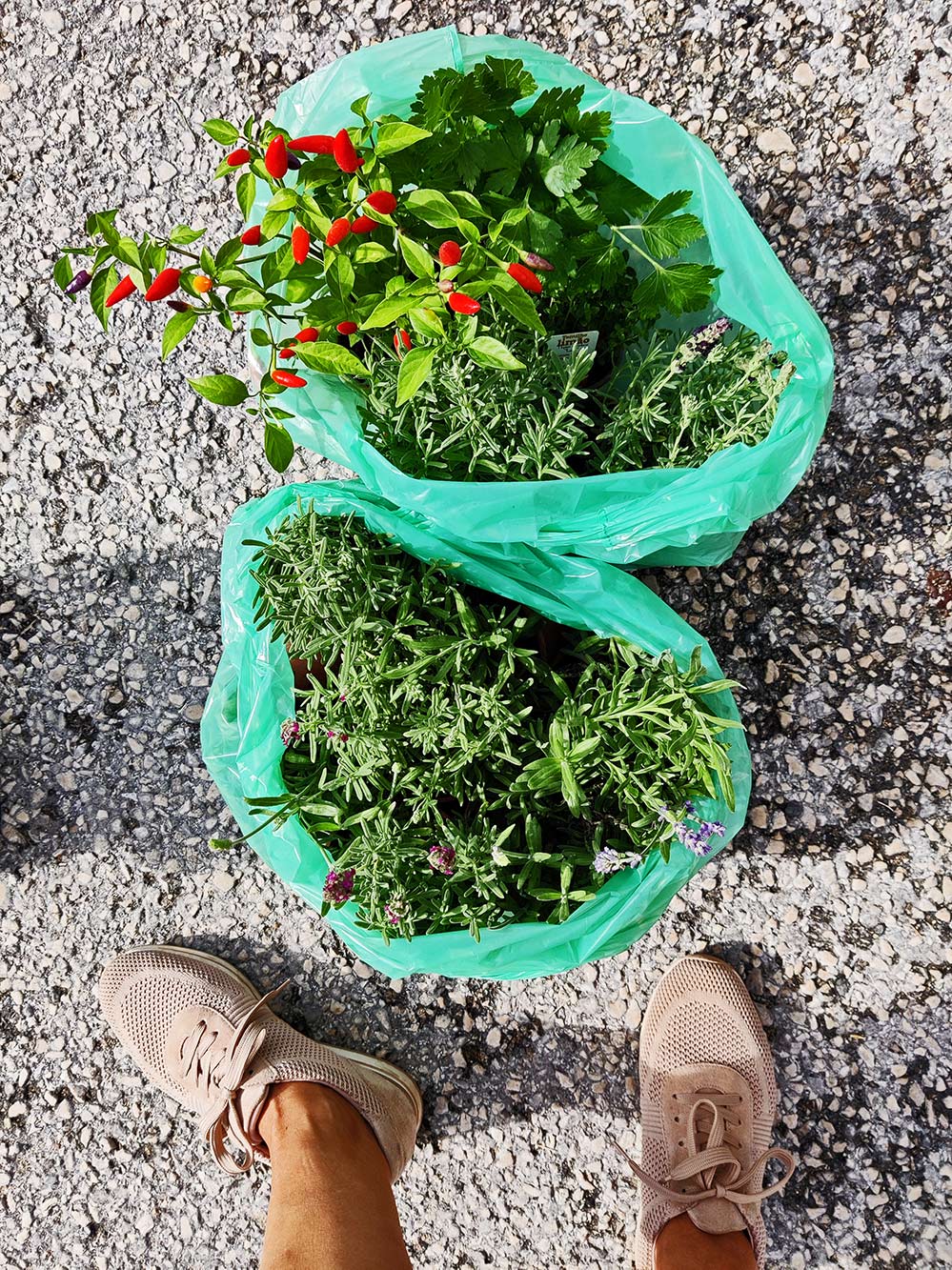 Zondag, marktdag. Niet echt elke zondag, we slaan wel eens over, maar vaak zijn we op de markt te vinden. Het is ook mooi om met vrienden af te spreken en na wat inkopen gedaan te hebben, lekker samen eten. Er is altijd wel iets wat aangeschaft moet worden, altijd wel planten die in de aanbieding zijn. Deze keer flinke kwamtumkorting bij de aanschaf. Je koopt misschien meer dan je van tevoren had bedacht, maar je komt wel met een lekkere tas, eh, twee tassen, thuis. Tijm, lavendel, pepers, van alles wat.