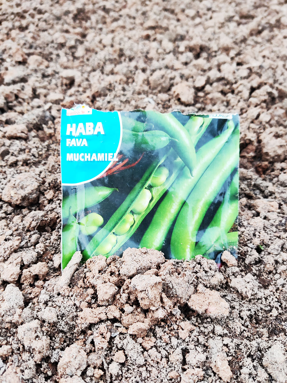 Wie zaait zal oogsten zeggen ze wel. Nou klinkt dat als een absolute zekerheid, maar dat is het allerminst. Altijd maar afwachten, water geven, dieren (kippen!) op afstand houden enzovoorts. Maar als het lukt dan heb je ook wat. Het is nu tijd om de tuinbonen de grond in te doen, Haba fava muchamiel is geen Portugees, het is Spaans. Haba fava is tuinboon en muchamiel zal er wel op duiden dat het erg zoete bonen zijn. Portugees zou zijn feijão fava, om maar even aan te geven hoeveel Portugees en Spaans van elkaar verschilt.