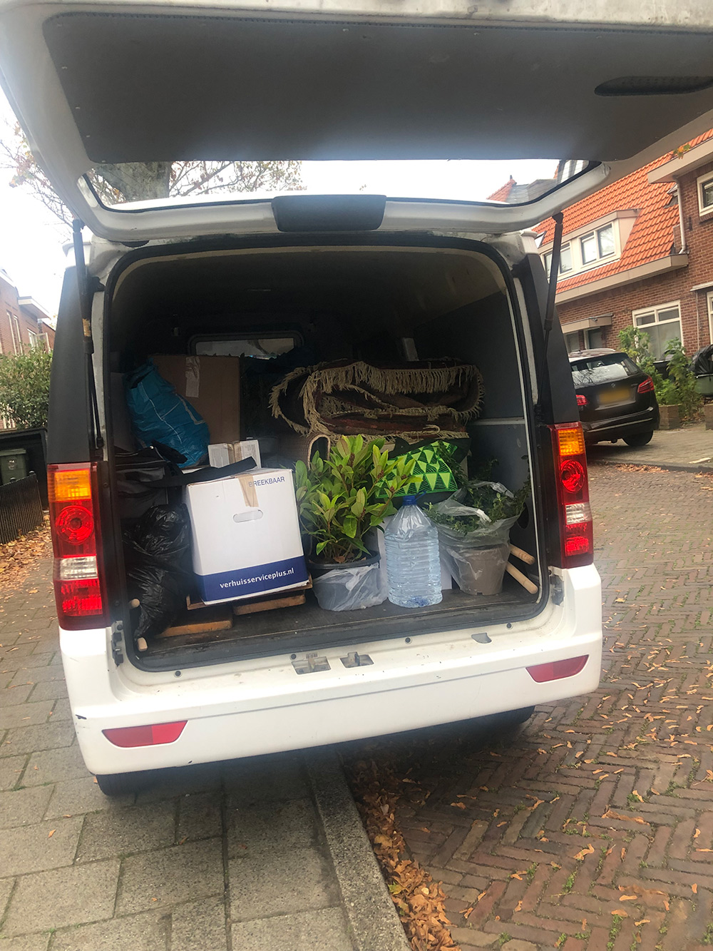 Vanochtend is Herman vertrokken vanuit Haarlem naar Portugal. Uiteraard weer met een wagen volgeladen. Televisiekast, diverse planten, dozen met boodschappen, een televisie, een sjoelbak, tassen met gordijnen en zowaar een vloerkleed. En het eigen gereedschap. Het kost echt niet veel moeite om het busje vol te krijgen.