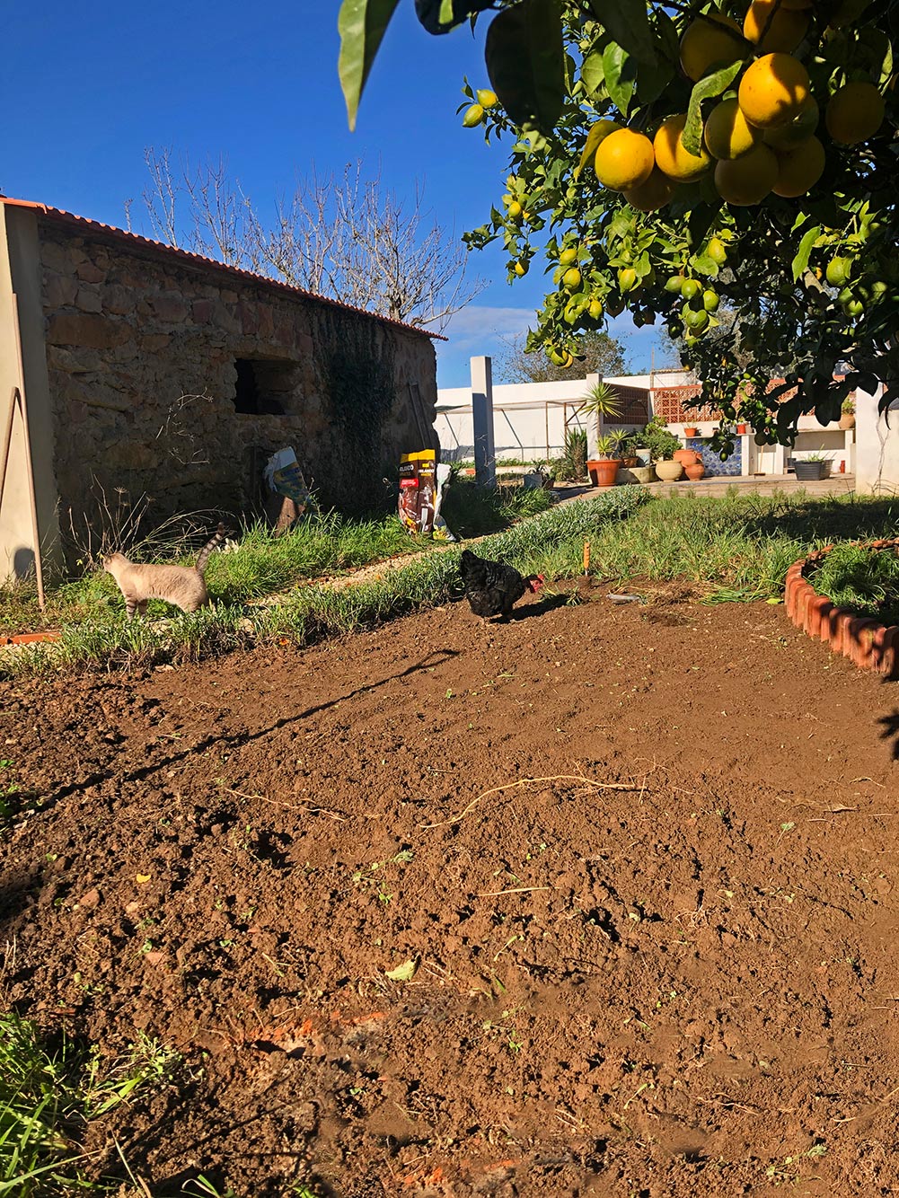 Betty is een stuk van haar grasveld af aan het steken. Het groeit te veel aan de randen. Het is dat stevige Portugese gras dat groen blijft in de zomer, ook als het erg droog is. Wat zij te veel heeft kunnen wij mooi gebruiken. Het stuk onder de citroenboom en de sinaasappelboom is een beetje ongelijk en er groeit allerhande onkruid dat in de regentijd zo ongeveer explodeert en in de droogte van de zomer afsterft en een kale vlakte achterlaat. Dit stuk zijn we begonnen vol te zetten met dat gras. ’t Eerste stuk wil nog niet erg, dat is aangeplant juist tijdens de droge periode, wat volgens sommige insiders de beste tijd is. Je kunt je dat afvragen. ’t Gras dat we er nu inzetten komt in relatief vochtige grond te staan en als het er eenmaal instaat komt er nog een bui regen overheen. Toch een beetje het idee dat dat beter werkt. We gaan het zien.