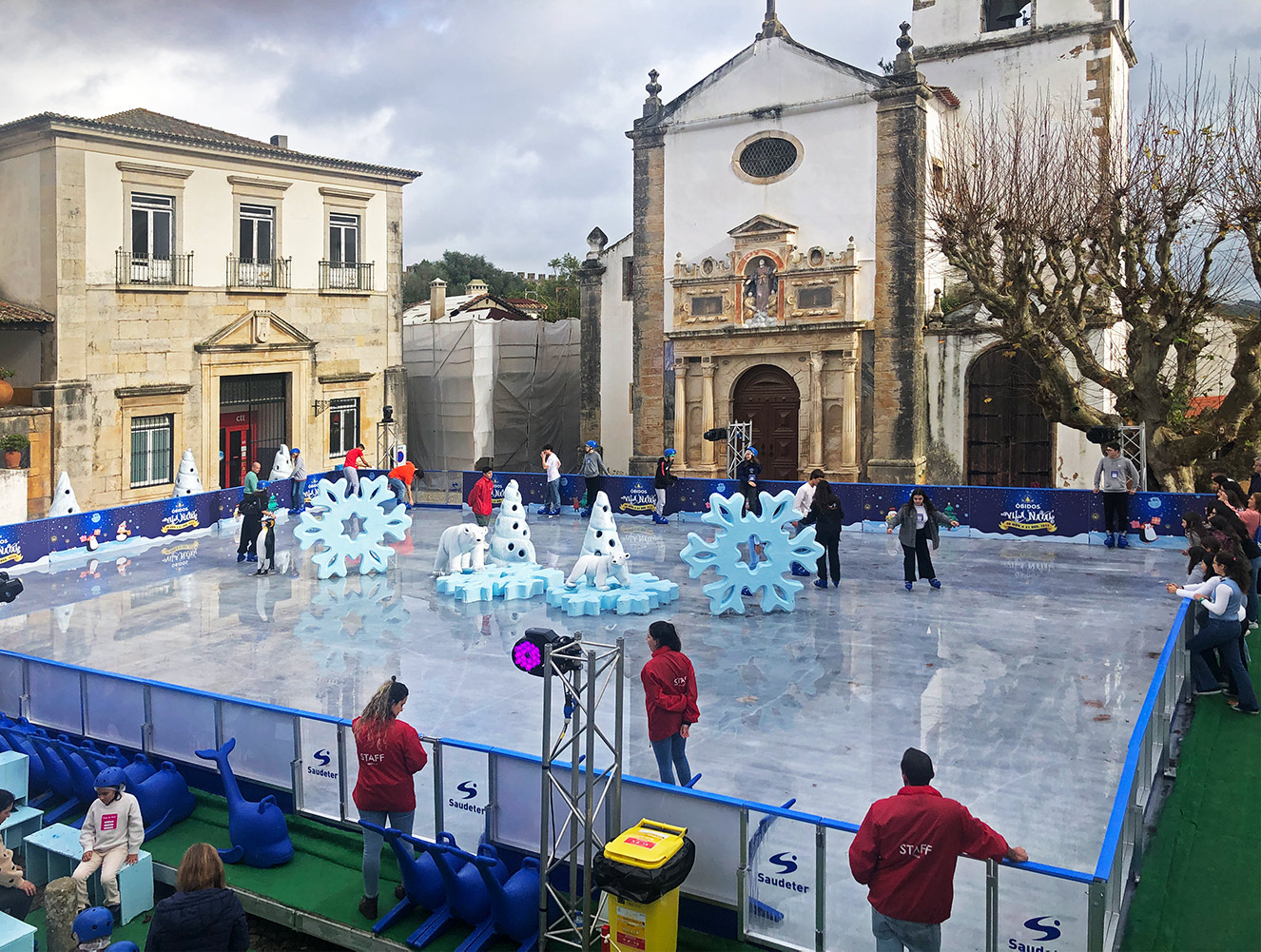 In Nederland heeft het flink gevroren en kon er afgelopen week lekker geschaatst worden. In Óbidos is een schaatsbaantje aangelegd, waar een ijsmachine flink staat te werken om een ijslaag te krijgen bij een temperatuur van 18°C met zo af en toe de zon erop.