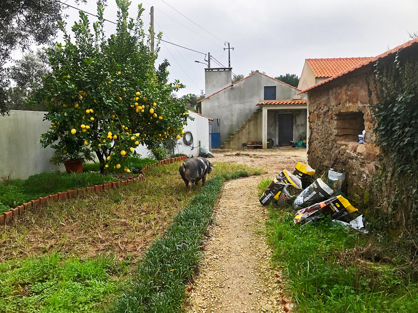 Af en toe sta je een beetje raar te kijken. We waren hard bezig het appartement klaar te maken voor onze nieuwe vrijwilligers, Emily en Tom, beginnen de honden ineens te blaffen, wil je gaan kijken en loop je appartement uit. Sta je in ene oog in oog met een gigantische zeug! Ze waren kennelijk maar eens aan de wandel gegaan en zagen dat het hek open stond. Hier waren ze nog niet geweest, dus maar eens op onderzoek gaan. Niet één, maar twee van die kolossale beesten kuieren rustig over ons terrein. Ze zijn gelukkig verre van agressief, als je naar ze toeloopt, wandelen ze gewoon een stukje verder. Zo kun je ze ook weer van het terrein afdirigeren.