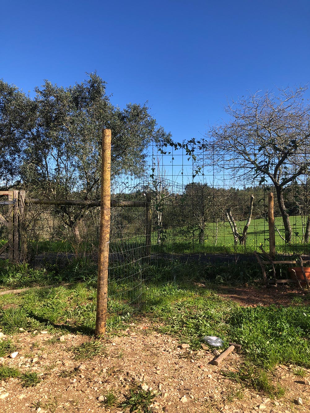 Het hek dat we gemaakt hebben toen we hier gingen wonen, is aan het rotten. We hebben een vergissing gemaakt door het hek deels van nieuw hout te maken, maar ook delen van het oude hek te gebruiken. Niet handig, want die waren al een eind op weg en nu, vijf jaar later, is het niet meer om te doen. We gaan een ijzeren hek plaatsen. Het ding staat al een tijdje binnen in het oude huis, maar vindt maar eens iemand om het te plaatsen tegen een redelijke prijs. Het nieuwe hek wordt aan betonnen palen gemaakt en die moeten weer een tijdje uitharden voordat er wat aangehangen kan worden. Al die tijd zouden we geen hek hebben, wat zou betekenen dat de honden zo’n beetje vrij spel zouden hebben.