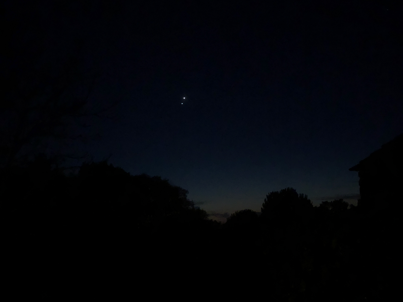 Het is niet voorbehouden aan Portugal, want overal ter wereld zichtbaar, maar de samenstand van Jupiter en Venus. Mooi te zien aan de noordwestelijke hemel. Aan die kant is de lucht donker, aan de andere kant zou niet gaan want dan kijk je in het licht van een lantaarn. Het is ook nog steeds koud ’s nachts, door het heldere weer, maar dat komt nu juist mooi uit. Er zijn vroeg in de avond nog nauwelijks sterren te zien maar de planeten staan helder aan de hemel.
