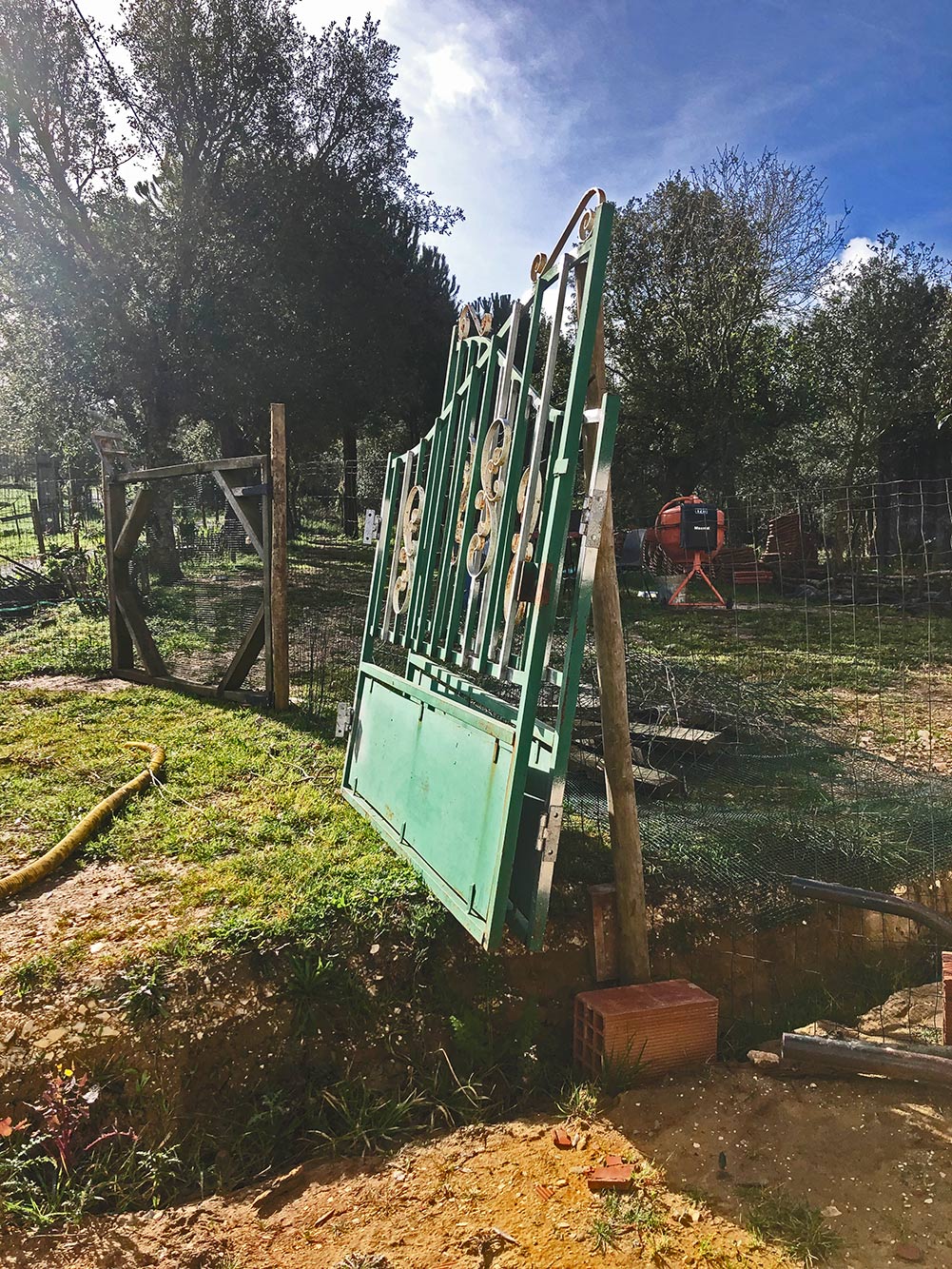 Vandaag vertrekt Henrique weer, de rest van zijn WorkAwayperiode zit hij bij Betty en daarna vertrekt hij naar Schotland. Vandaag zou Rui beginnen en daarom hebben we de hekken alvast op zijn plek gezet. In afwachting van uiteindelijke plaatsing en natuurlijk dat Rui ook meteen de goede maatvoering heeft. Helaas zegde hij af. Gelukkig is hij wel één van de modernere Portugezen die in ieder geval aankondigt dat hij een andere dag komt. Als het goed is komt hij nu aanstaande donderdag, Tot die tijd moet de hekken zichzelf maar een beetje bezighouden.