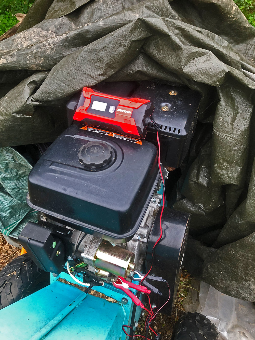Hector heeft kuren. Eigenlijk altijd al gehad. Al een keer benzinetekort, dat is dan wel niet echt aan Hector zelf te wijten, maar toch. De bougie al een keertje schoongemaakt na een tijdje stilstaan en nu wil het weer niet. Uiteraard is het benzinepeil gecontroleerd. De bougie is er weer uitgehaald en schoongeschuurd, maar dat heeft allemaal niet geholpen. Nu was de accu ook alweer slap, ook al door het lange stilstaan natuurlijk, zodanig dat de startmotor ook al niet lekker werkte. Dan maar de acculader erbij en even opladen. Als het niet regent morgen misschien maar kijken of het ding starten wil.