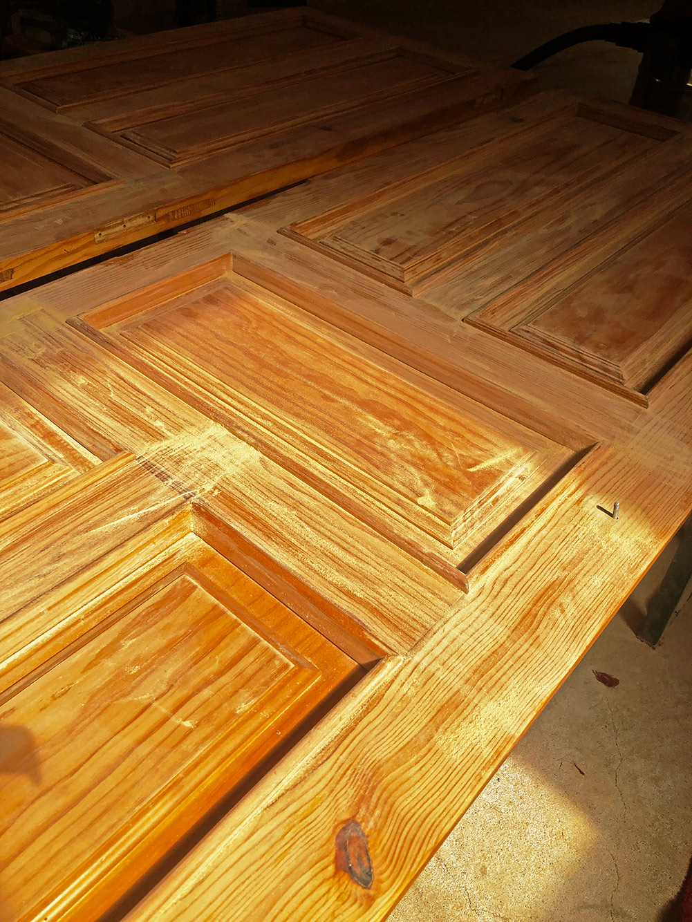 Later de laatste vier deuren nog schuren, maar daarvoor wachten we wel tot het weer regenachtig is.