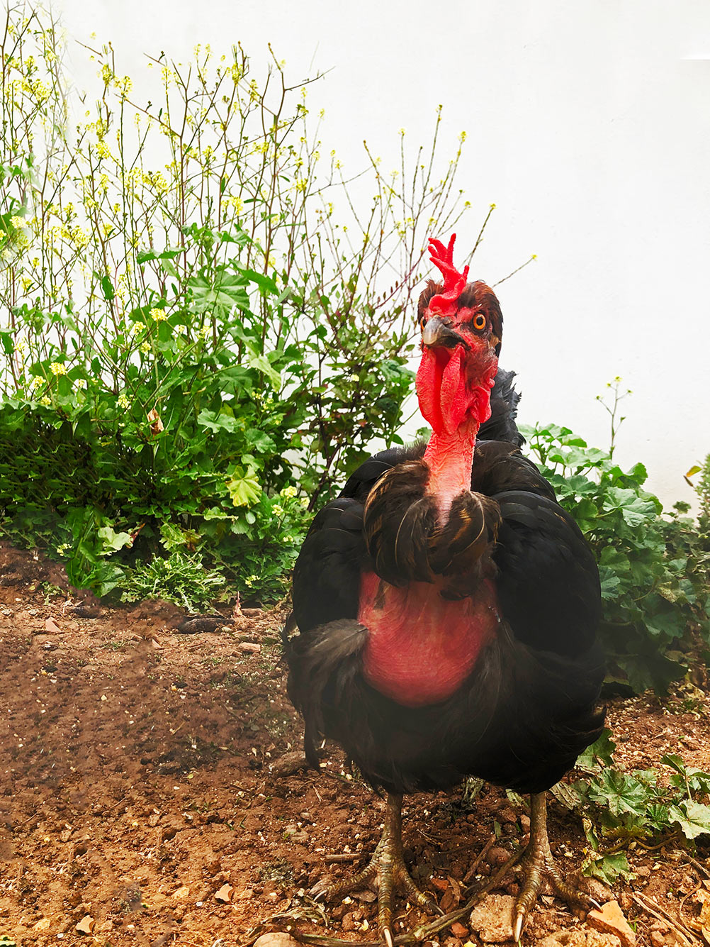 Niets menselijks is de kippen vreemd. Branca de Neve en Mortícia zitten al een tijdje zonder haan. Senhor Barcelos is verhuisd naar Maria al een tijdje geleden, alweer bijna twee jaar. Helaas ook overleden in die tussentijd. Kennelijk zit Mortícia lekker in haar kippenvel, al voelt ze zich misschien niet thuis in een kippenlijf. ’s Ochtends neemt ze tegenwoordig de honneurs van Senhor Barcellos waar. Ze heeft kennelijk door dat hij niet meer terugkomt. In de ochtend staat ze als een volwassen haan te kraaien, eigenlijk alleen ’s ochtends, zo na een uur of negen is ze weer gewoon kip en left ze enthousiast haar dagelijkse ei. Als je haar wilt horen, klik dan op haar foto.