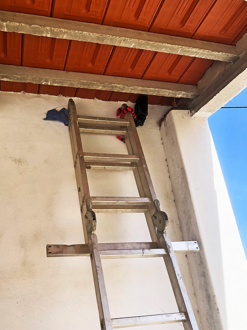 Onder het dak van de alpendre zit al een paar jaar een nestje. Enthousiast gemaakt, maar nooit bewoond. Tot dit voorjaar. Amber en Evert ontdekten dat het nestje ineens bewoond is, er zitten een paar kale koppies in met hier en daar een haartje, Amber heeft het gefilmd, maar het is erg lastig doordat het zo pal onder het dak zit. Als je er dichtbij zit wil het ouderpaar niet meer komen en dan zitten de jongen zonder voedsel. Met een opstelling van een camera met bewegingssensor lukt het misschien om wat foto’s te maken. De camera zit pal op nest, vastgemaakt met zo’n driepoot met buigbare poten. ’t Was nog even de vraag of de ouders nog wel durfden te komen, maar dat ging gelukkig goed. Na een minuut of vijf van heen en weer vliegen, naar het nest toe en dan toch maar niet. ’n Stukje terug en afwachten op het dak van het oude huis en dan toch maar naar het nest.