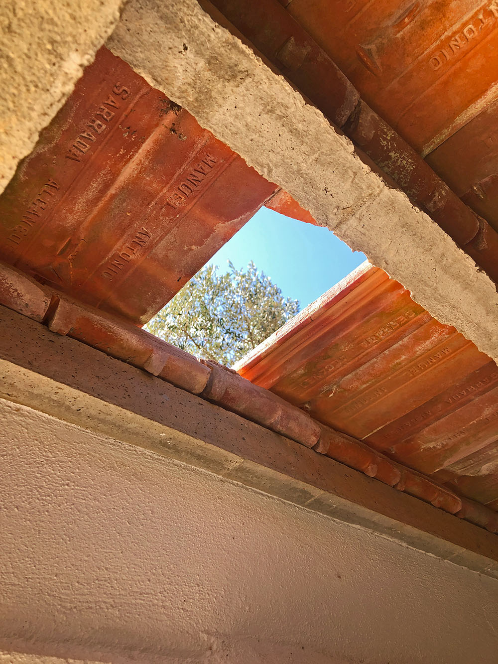 Het ene lek is nog niet gemaakt of het volgende wordt alweer ontdekt. De gotenman heeft bij het plaatsen van de goten twee pannen gebroken. Niks gezegd natuurlijk. We ontdekten het toen het even flink regende en we blij waren dat het eerste lek verdwenen was.