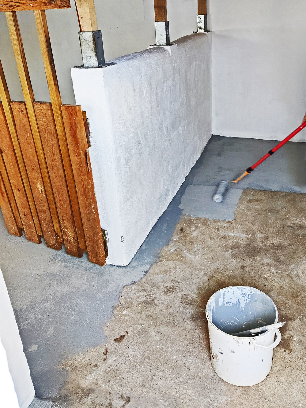 De opwaardering van de stal begint lekker op te schieten. De muren zijn twee keer gewit en zien er stralend uit. Wat een licht in de stal ineens. We hebben de vloer geverfd met betonverf, in de hoop dat het straks wat makkelijk schoonmaken is. Rare verf, het is vrij licht als je het erop doet, het wordt donkerder als het aan het opdrogen is en als het beton eronder dan weer droogt dan wordt het lichter. Het mooie is dat de kleine gaatjes in het beton gevuld worden. Morgen gaat de tweede laag erop en dan is het bijna af. De deur moet nog op maat, want die is aardig uitgezet, hij kan niet meer echt lekker dicht en de ruif moet nog worden opgehangen.