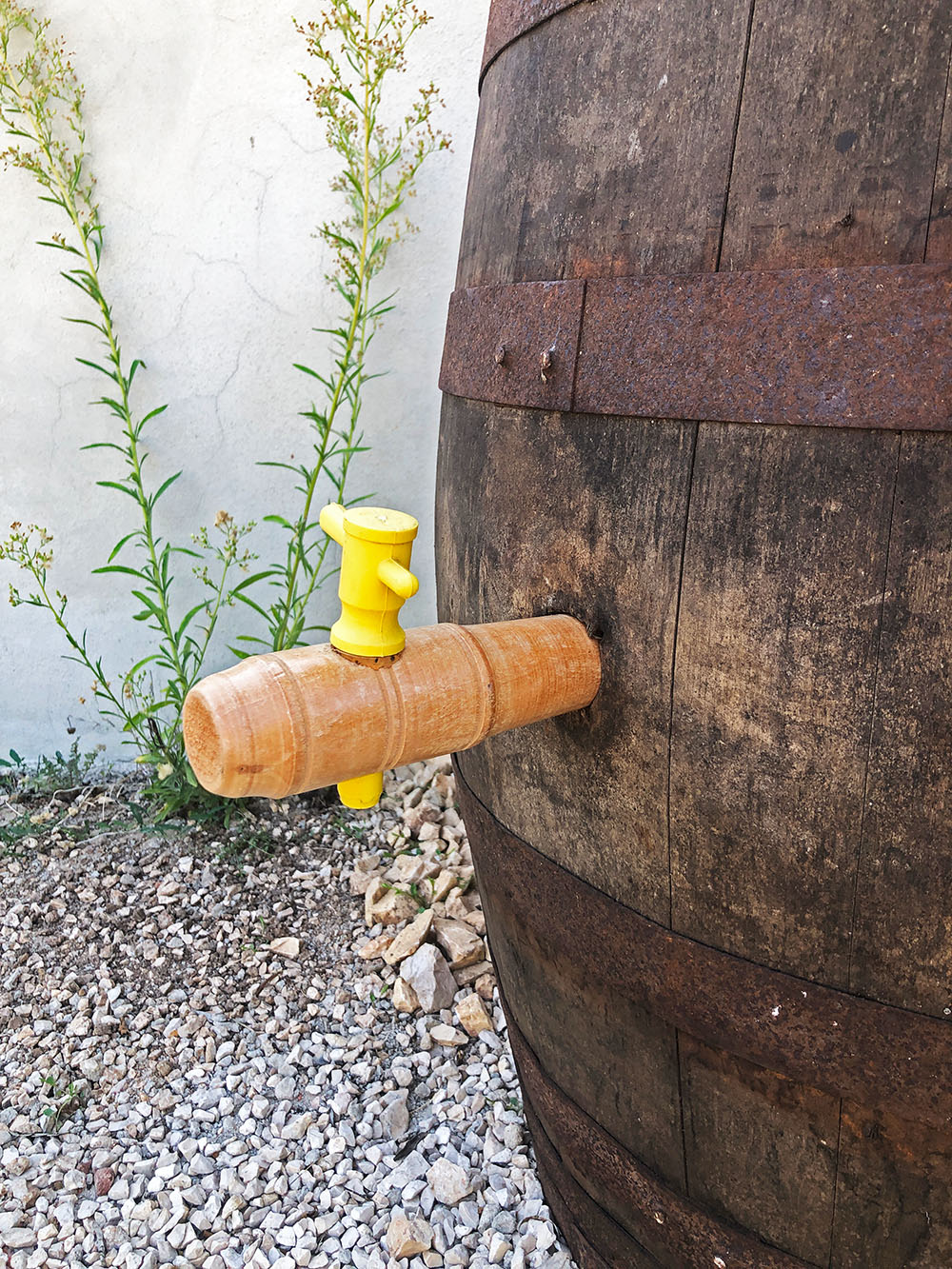 De regentonnen die we gekocht hebben, zijn zonder kraan. Dat wil zeggen, één echt zonder, er zat een kurk in met een lap eromheen, de ander met een houten kraan, die vergeven was van de houtworm. Niet echt handig als je houten regentonnen hebt. Op de Santanamarkt hebben we eenzelfde kraan gevonden. De man had er maar één, maar de volgende week zal hij er nog een bij zich hebben. Jammer wel dat er nog een stuk plastic in het mechanisme zit, maar dat hebben ze allemaal, daar valt weinig aan te doen.