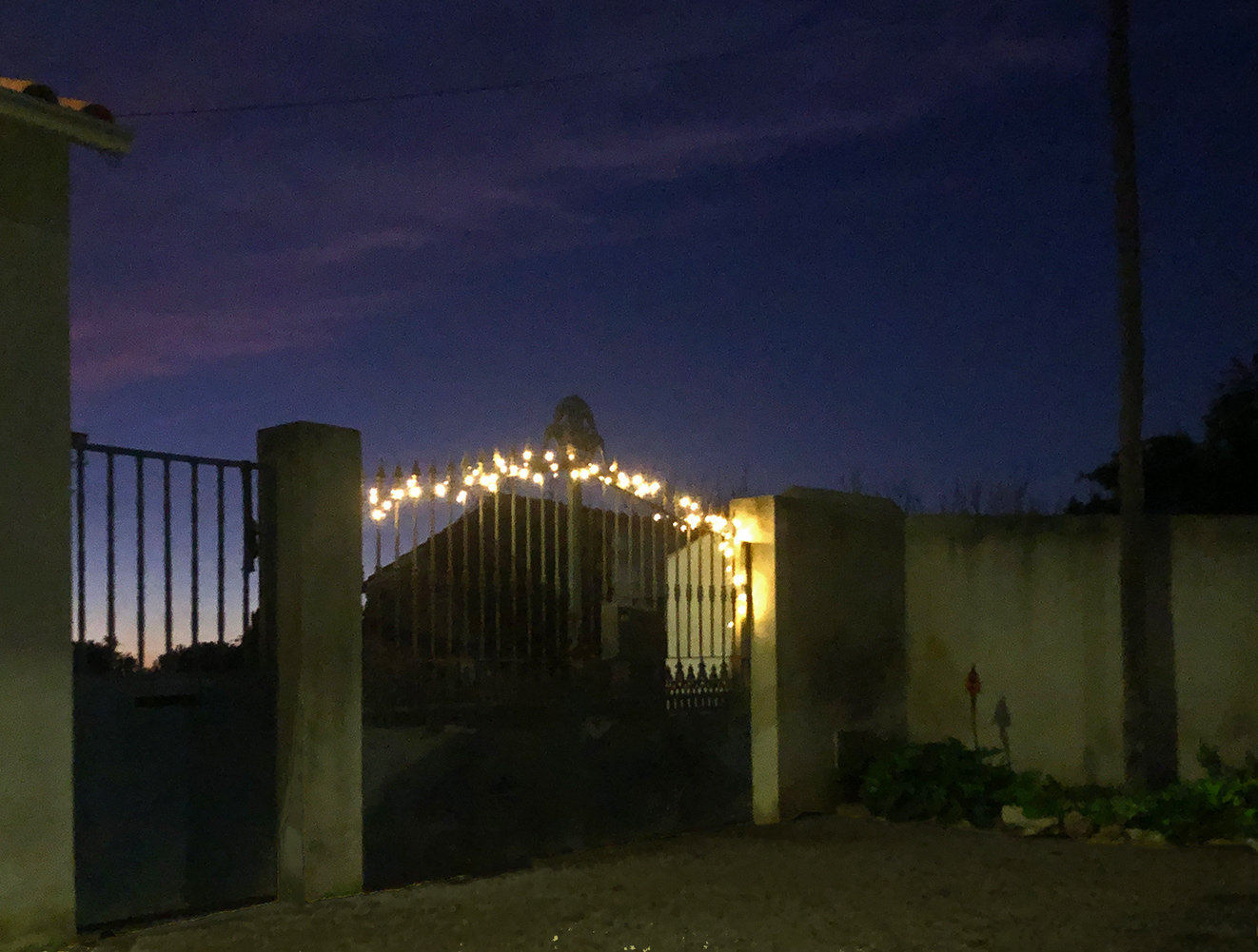 Voor het eerst hebben we buiten ook kerstverlichting aangebracht. Niet uitbundig, een beetje terughoudend zelfs, maar wel gezelig.
