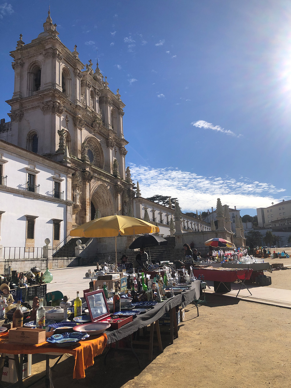 Elke derde zondag van de maand is er markt in Alcobaça. Geen gewone markt met groente, fruit en vis, maar een markt van antiquiteiten en oude spullen. We zijn er nooit eerder geweest, maar het is echt de moeite waard. Er valt heel wat te snuffelen. Oud gereedschap, schaaltjes, kopjes. Prullaria natuurlijk ook.