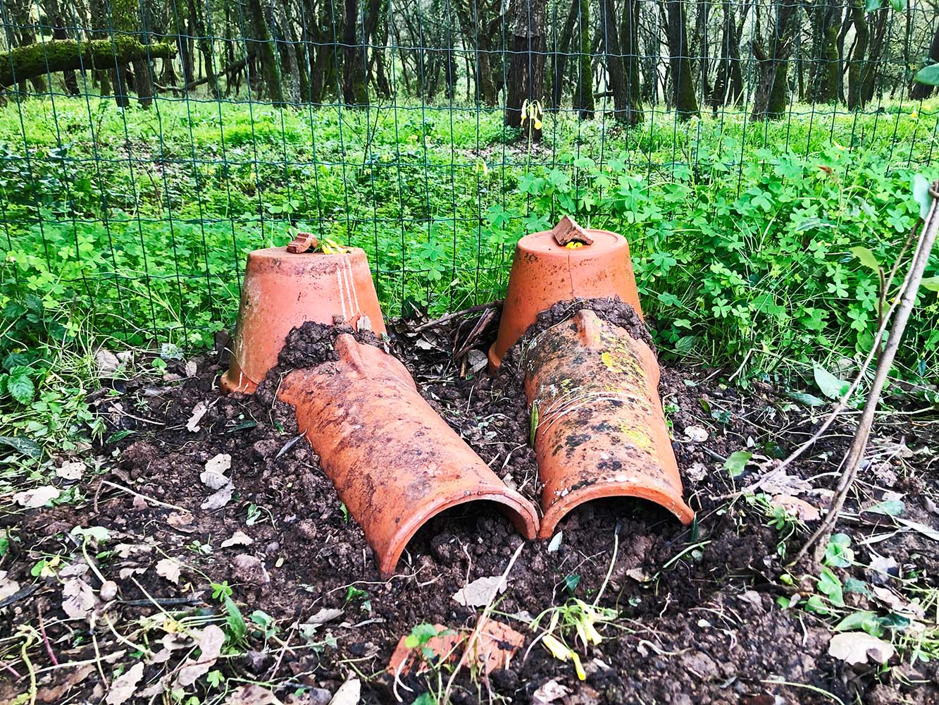 Om ze te helpen hebben we egelhuizen gemaakt. Van bloempotten waarvan een stuk uitgebroken is en nokvorsten die we nog hadden van het middelste dak dat vervangen is werd een ingang gemaakt zodat de katten er niet bij kunnen als ze eenmaal binnen zijn. Ella, één van onze vrijwilligsters, heeft zelfs een klein trappetje gemaakt om het kleine hellinkje te nemen dat voor de huisjes zit.