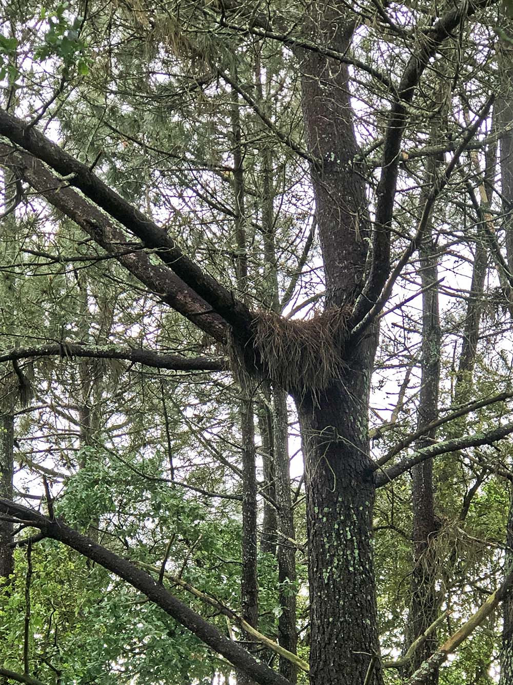 De boom staat in het stuk langs het weggetje vlakbij de varkensboerderij. Er komt daar nooit iemand, er komen alleen af en toe auto’s langs en soms vrachtwagens voor varkensvoer of zo, dus als het vogels zijn dan hebben ze een mooie rustige plek uitgekozen.