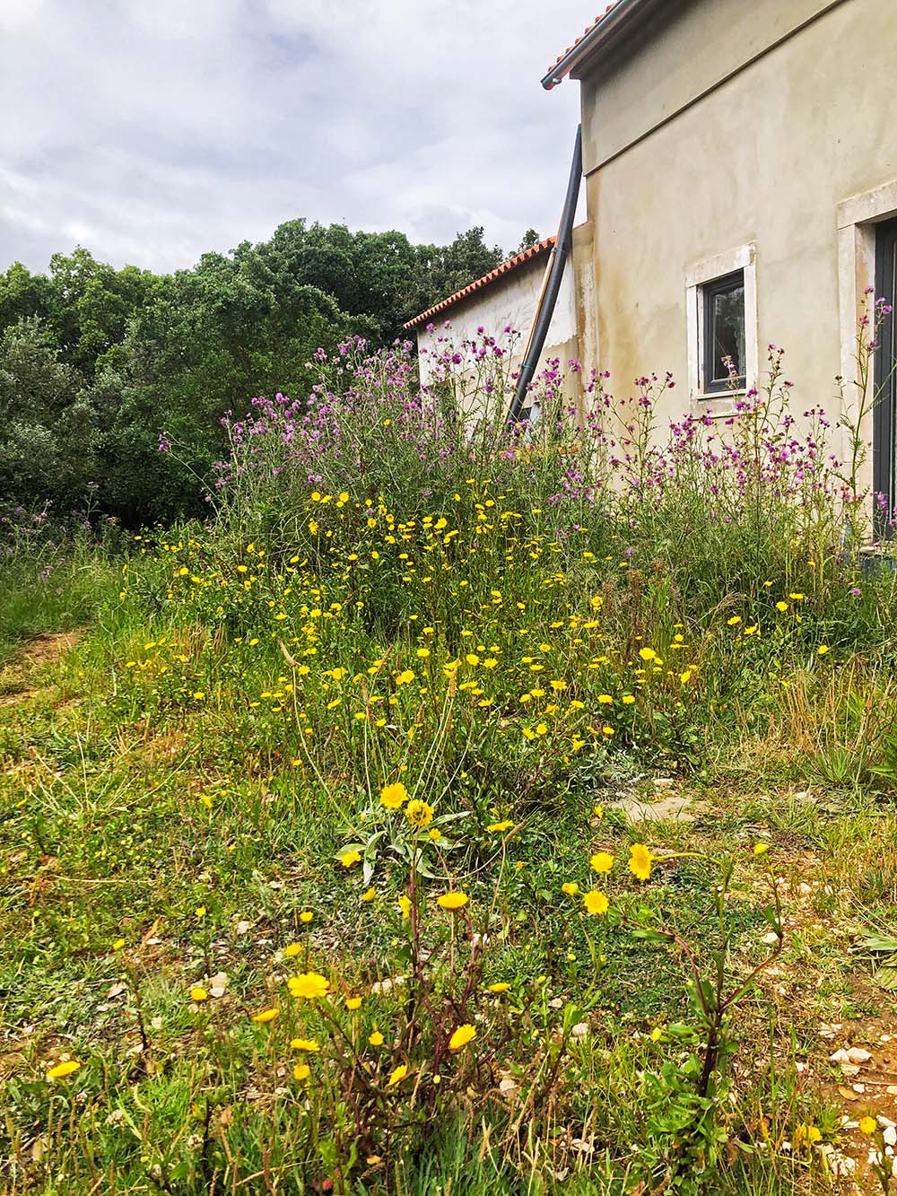 De distels zijn inmiddels weg, die voeren we aan de geiten die dat een smakelijk tussendoortje vinden. Op zich wel mooi dat ze weg zijn voordat ze uitgebloeid zijn want dan krijgen ze van die wollige bollen met zaad die over het hele terrein vliegen.