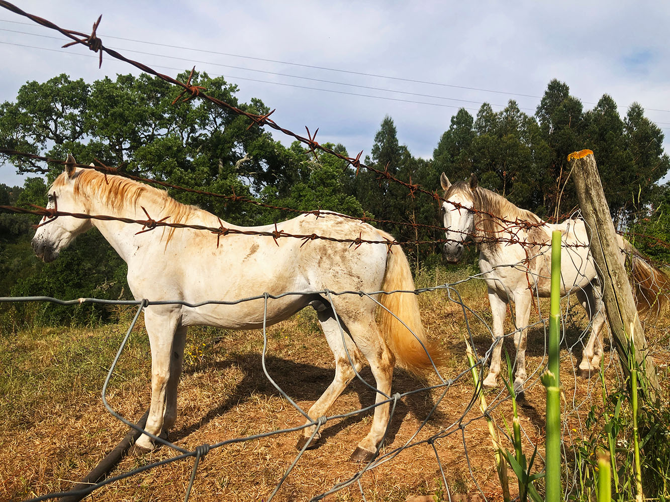 Senhor Fonseca is onze buurman. Niet dat hij naast ons woont, maar het veld tegenover ons is van hem. En ook het veld een stuk verder op het weggetje. Hij fokt paarden en hij verkoopt ze over de hele wereld. Hij doet, of deed, ook mee aan dressuurbijeenkomsten. Of dat in wedstrijdverband was, weten we niet. Wel dat hij dat bij de jaarlijkse paardenmarkt in Golegã, een plaatsje in de bergen, een uur rijden van ons ongeveer, acte de presence gaf en in traditionele Portugese kostuums op zijn paard zat. De paarden van hem zijn, net als hijzelf, bejaard en mogen nu genieten van hun oude dag.