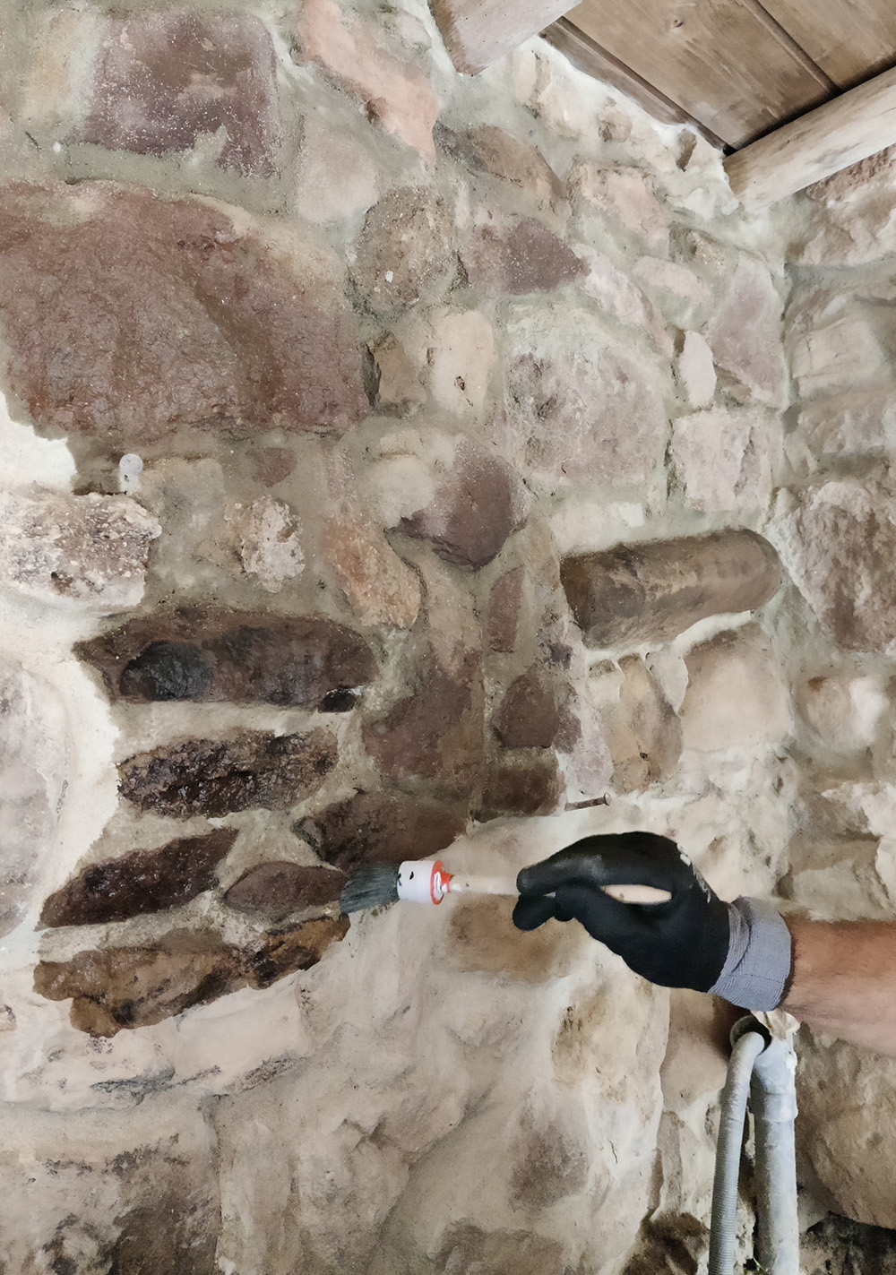 Eigenlijk viel het best wel mee. En het resultaat? Je ziet er helemaal niets van! Je kunt niet eens zien wat je wel en wat je niet gedaan hebt. Het stond op de verpakking dat het aanzicht van de steen niet verandert. Dat klopt. Als het opgedroogd is, kun je het niet meer zien.