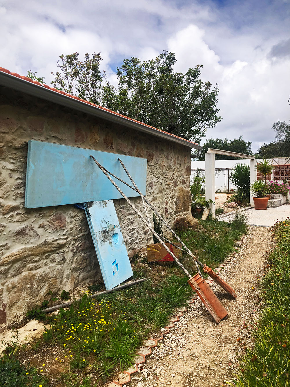 Het Oude Huis wordt behandeld. De mannen zijn gekomen met hun emmers gif en hun machines om het te vernevelen. In de ochtend hebben we alle spullen uit het oude huis weggehaald die in de weg stonden of die niet bespetterd mogen worden. De mannen begonnen met afdekfolie over de muren te hangen om de stenen te beschermen, maar dat gaven ze snel op. Niet te doen. Je kunt geen tape op de muren plakken, dat houdt gewoon niet en vastmaken in het hout kan natuurlijk ook niet want dan zou er een gedeelte niet behandeld worden. Het Oude Huis heeft wel ramen maar geen ruiten, als het een beetje waait tocht het meteen. De wind zou het vernevelde gif tegen de muren slaan, de tocht moet zoveel mogelijk tegengegaan worden. De ramen moet provisorisch dicht gemaakt worden. Ook om te voorkomen dat de katten naar binnen zouden gaan. Het moet een dag dicht blijven, het spul moet de gelegenheid krijgen goed in het hout te trekken, als het te snel droogt, trekt het minder in, nog een reden om het niet te laten tochten. Morgen laten we het nog een dat dicht, zodat het goed ingetrokken is en dan laten we het lekker doorwaaien.