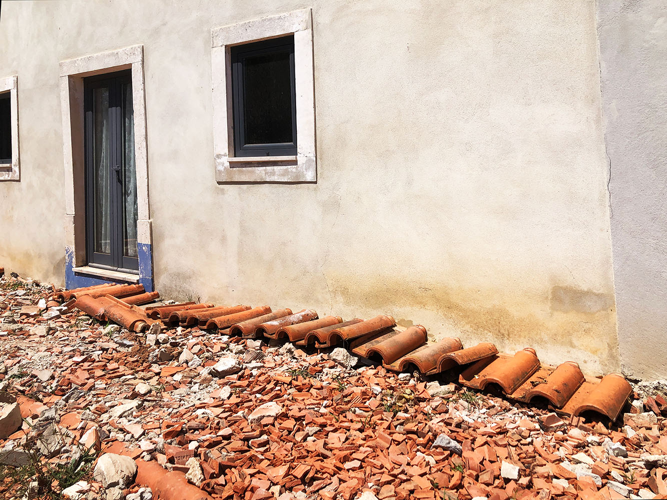 De laatste voorbereidingen. Op het nog te maken terras aan de voorkant van het huis groeien nu steeds bramen. We proberen ze weg te krijgen met een zoutoplossing en dat werkt fantastisch. Voor een tijdje. Uiteindelijke komt het toch weer terug. De bramen zitten onder het huis, je kunt uittrekken wat je wilt maar ze komen altijd terug. Omdat het nu dicht gaat, nou ja binnenkort hopelijk, willen we zoveel mogelijk weg zien te krijgen. Roundup is de oplossing. Zijn we geen voorstander van en we willen het niet te veel gebruiken, maar dit gaat allemaal dicht, dan is de schade niet zo groot. Het spul is er dus opgedaan en we hebben het afgedekt met dakpannen om te voorkomen dat de honden of de katten het uit nieuwsgierigheid gaan proeven. Je weet maar nooit.