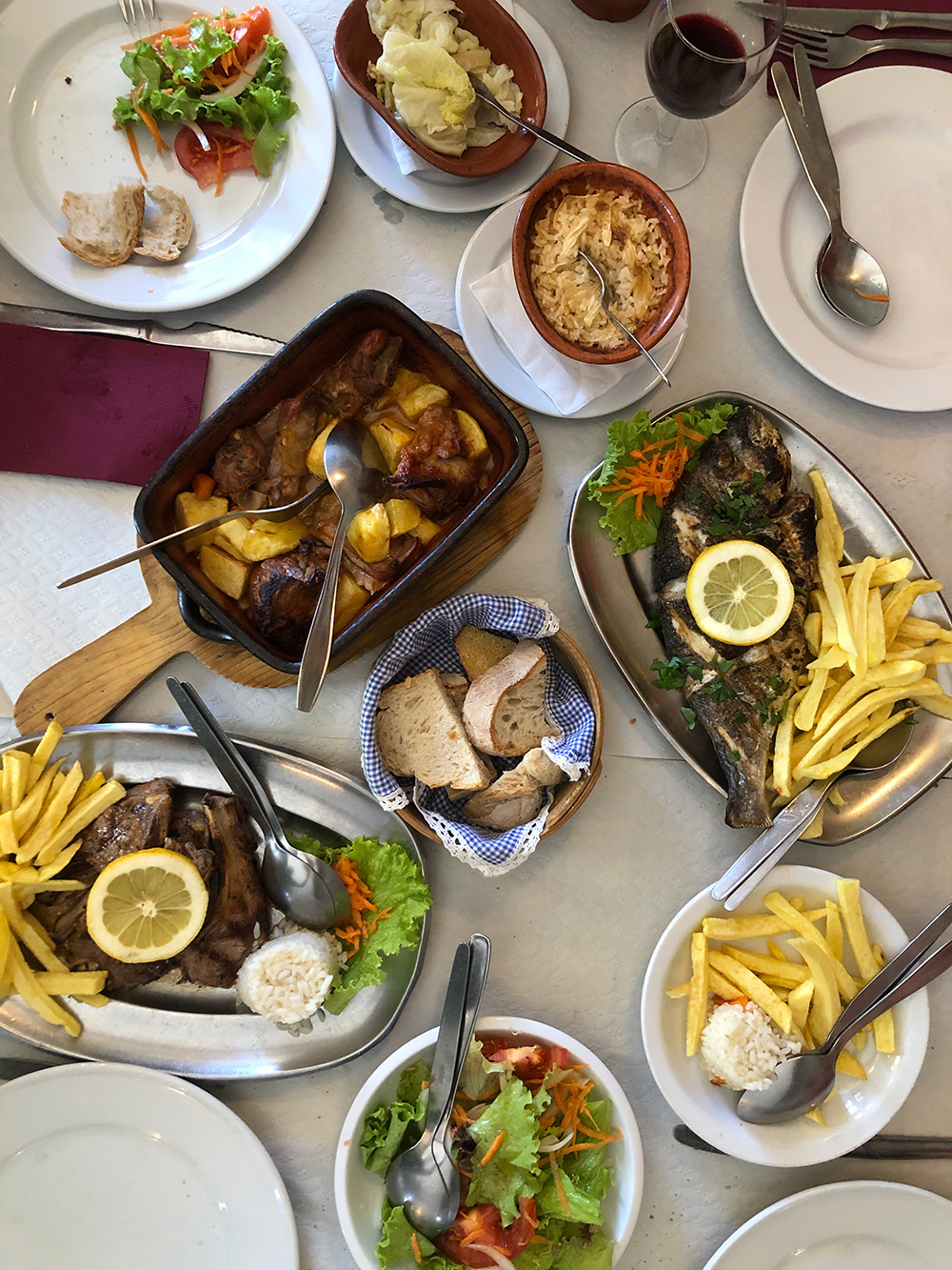 In Benedita is een klein restaurantje, Paraíso heet het. Als je daar naar binnen gaat, waan je je zo enkele decennia terug in de tijd. Het eten is er geweldig, erg traditioneel en de mensen zijn er bijzonder vriendelijk. We komen er ook weer niet zo vaak, maar al we gasten hebben gaan we er meestal wel een keer heen. Vandaag ook met Amber en Evert, maar helaas, ze zijn met vakantie tot en met dit weekend. We moesten een kleine zoektocht doen om een alternatief te vinden. Eerst een restaurant net buiten Benedita, maar helaas geen vis. Daarna naar een restaurant langs de IC2, alleen even binnen geweest, veel herrie en eigenlijk een veredelde snackbar. Uiteindelijk neergestreken bij Cantinho da Serra, een restaurant vlakbij Rio Maior, waarschijnlijk al redelijk oud, de weg is de -heel- oude hoofdweg van Lissabon naar Porto en ooit een erg belangrijke verbindingsweg. Waarschijnlijk is het restaurant een pleisterplaats geweest.