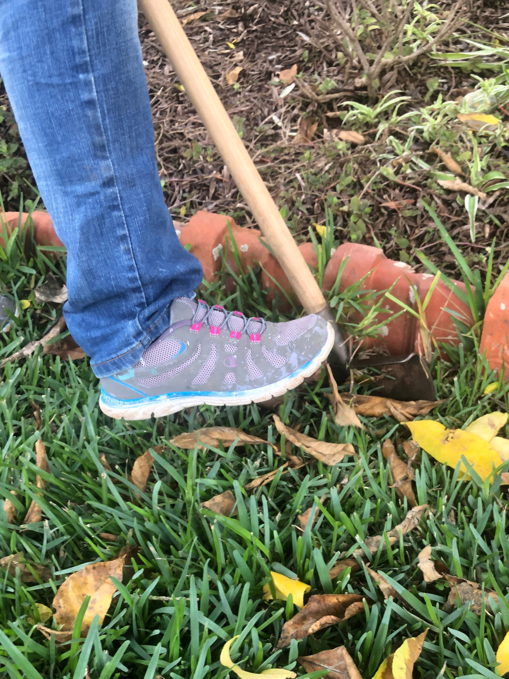 Het heeft weer een paar dagen geregend en gemist en dat betekent dat het gras weer lekker aan het groeien is. Aan de rand probeert het over de afscheiding van dakpannen te komen door lange staken te maken en die staken worden dan topzwaar, vallen over het randje en gaan daar weer vrolijk wortelen. Zover laten we het niet komen, we snijden het af voordat het zover is en wat we afsteken planten we weer ergens anders. Olga heeft goed geholpen bij het afsteken, we kunnen weer een heel stuk grasland aanplanten. Door de regen is de grond redelijk zacht en het is daarom een tamelijk makkelijk werkje vergeleken met een tijdje terug toen de grond droog was en als beton aanvoelt.