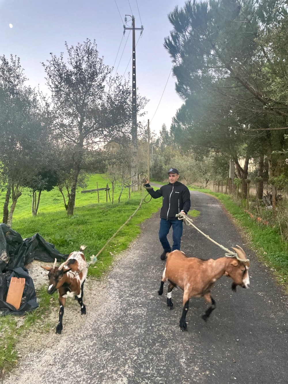 JF, eigenlijk Jean-Frederique, maar dat zegt niemand, is een oud-collega van ING. In zijn ING-tijd woonde hij in Amsterdam, maar hij woont nu in Dallas, Texas. Hij is Canadees van geboorte en zijn vrouw is Frans. Hij is eigenlijk op bezoek bij zijn schoonfamilie in Parijs, hij dacht ik ben nu toch in de buurt en is daarom een nachtje bij ons geweest. Vanuit het drukke Dallas is het bijna een andere wereld als je bij ons even logeert. ’s Avonds lekker geholpen met de geiten binnen halen en met de honden lopen. ’t Was uitermate gezellig, ook wel een beetje raar om iemand uit een heel andere tijd en omgeving plotseling hier te hebben.