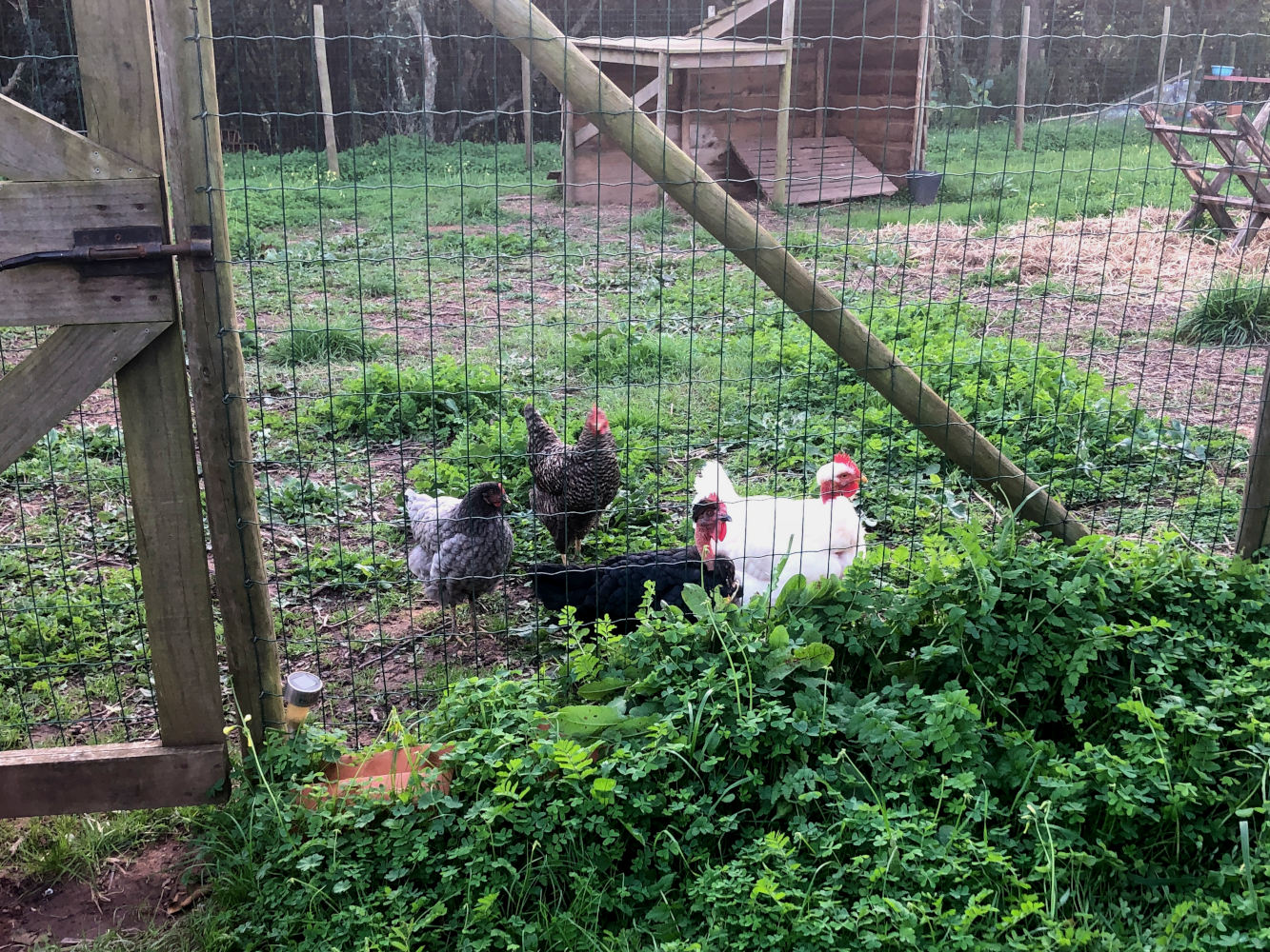 Als de kippen loslopen slopen ze werkelijk alles. Je kunt geen stekje in de grond zetten, geen plantje poten en niks zaaien of de kippen detecteren dat meteen en gaan zitten graven. Ook als planten en al wat langer staan, maar ze vermoeden torretjes of zo slopen ze het met hun klauwen de hele boel. Vandaar dat we ze niet meer los laten lopen maar overdag in de kraal zetten. Daar kunnen ze graven en slopen wat ze willen. Ze kunnen er ook schuilen mocht het gaan regenen en er is ook schaduw. Vrije uitloop van 300 m², hoe goed kunnen ze het hebben!