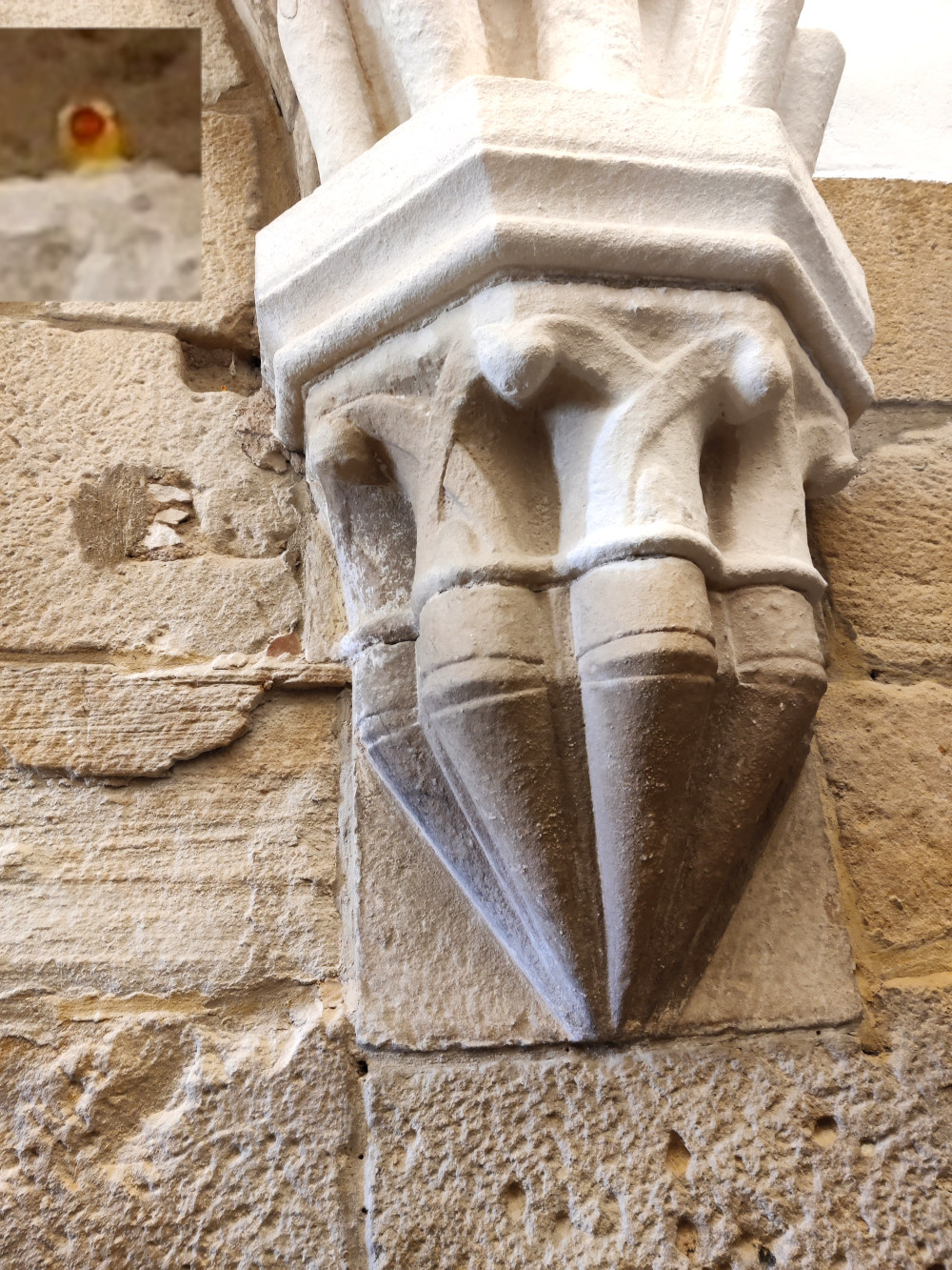 Elke keer weer wat nieuws! Met Wim en Bettina naar het klooster in Alcobaça. We zijn er al een paar keer geweest en het blijft indrukwekkend en fascinerend. Je loopt door dezelfde ruimtes en elke keer ontdek je weer wat nieuws. Nu wel heel bijzonder, in één van de zalen is een kleine afgescheiden ruimte dat waarschijnlijk werd gebruikt als voorraad- of opslagruimte. In die ruimte is naast een imposante pilaar in de muur een klein nisje, alsof er een steen ontbreekt, en in dat nisje zit een piepklein geel badeendje. Goed verscholen, maar toch zichtbaar. Op de foto maar een klein beetje uitvergroot anders zou het helemaal een zoekplaatje worden. Iemand heeft dat daar achtergelaten, misschien met de gedachte om te kijken of het er de volgende keer nog steeds zit.