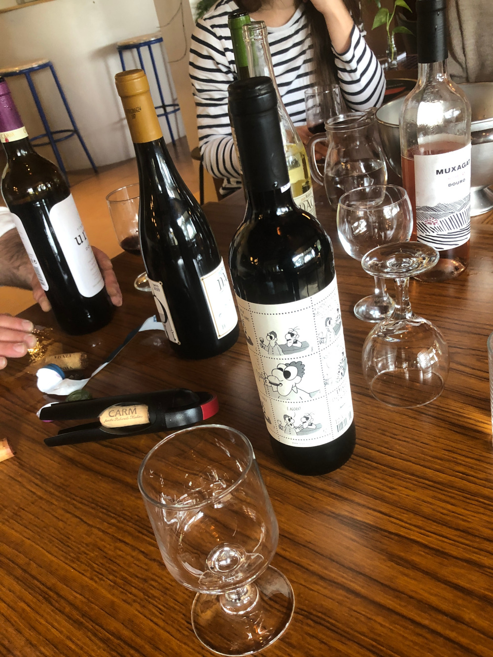 Vanmiddag lekker lunchen bij het restaurant van onze vrienden, met één van onze vrienden die die hondenkennel heeft. we bleven lekker lang zitten met als gevolg dat, toen de boel ging sluiten na de lunch, we midden in een wijnproeverij terecht kamen. Op speciaal verzoek van de vrienden natuurlijk, want we moesten eigenlijk helpen in het selectieproces. Ze gaan wijnen uitzoeken die ze op de kaart van het restaurant willen zetten en dan moet het goed samen gaan met de pizza’s die ze maken. Beetje jammer, want Amanda drinkt zo goed als nooit wijn en Herman heeft zijn jaarlijkse alcosabatical. Onze hondenkennelvriendin moest dus de honneurs waarnemen. En drank of geen drank, een gezellige middag hebben we natuurlijk altijd .