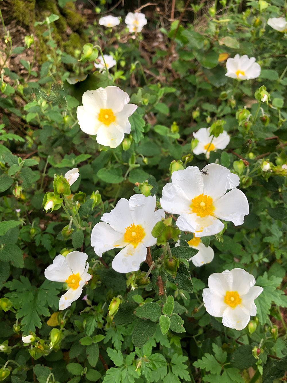 Charline, onze vrijwilligster van nu, is vandaag gearriveerd. Ze komt op een mooi moment. De regen is wel zo’n beetje achter de rug, al hadden we vandaag nog wel even een flinke bui. De combinatie van warme zon en stevige regenbuien doet de natuur goed. Vooral de rotsroosjes doen het ineens uitbundig. Plotseling staan de bermen er vol mee, het is een traktatie van de natuur. Het is echt mooi om te zien hoe snel alles reageert op iets hogere temperaturen. Niet alleen deze zie je overal, ook allerlei andere bloeiende planten staan in het veld te pronken. Paars, blauw, geel, oranje, wit. Alle kleuren kun je wel zo’n beetje zien.