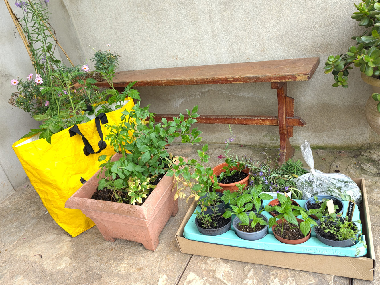 De auto vol geladen met van alles en nog wat. Spullen die we voor de verbouwing nodig hebben en die in Nederland goedkoper zijn of veel beter. Daarnaast een flink aantal planten, alsof we naar de luilakmarkt zijn geweest. En dan staan de zaden die we hebben meegenomen niet eens op de foto. Al met al, een mooie reis, we zijn weer heel wat spullen rijker.