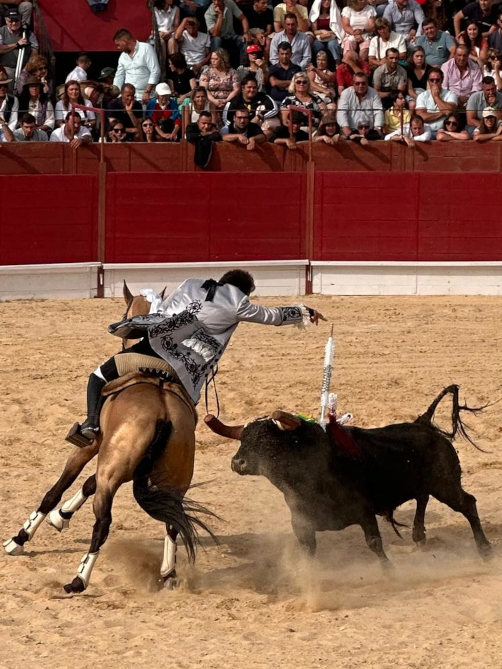We zouden er heen gaan, we waren uitgenodigd, maar we hadden een andere afspraak. Het stierenvechten in Benedita. We zijn er niet echt fan van, het is tenslotte stiertje pesten ter vermaak van het volk. In Portugal wordt de stier niet gedood tijdens het spektakel, in tegenstelling to Spanje, waar de dood van de stier het hoogtepunt is. De stier wordt wel gespiesd en zwaar gewond afgevoerd en waarschijnlijk volgt dan de gang naar het slachthuis. ’t Is wel triest en eigenlijk niet van deze tijd. Maar ja, je moet het een keer gezien hebben wil je er over mee kunnen praten en in die zin zouden we er wel heen gegaan zijn als we geen andere afspraak hadden.