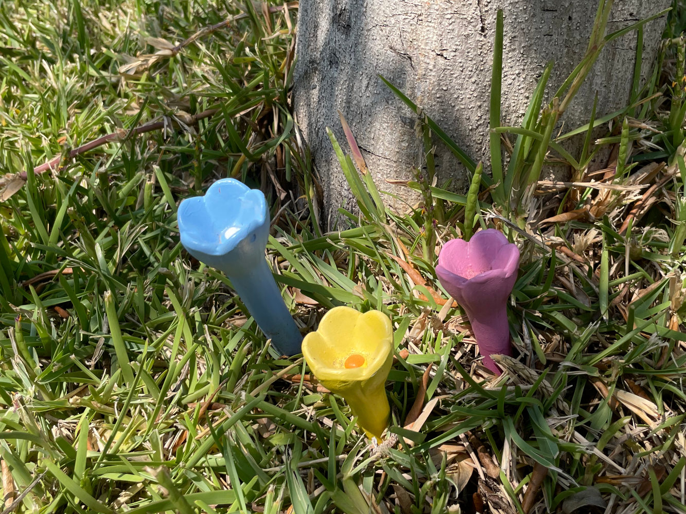 Charline is onze vrijwilligster van een tijdje terug. Ze is bij ons geweest vlak voordat we naar Nederland gingen en in de tijd dat wij in Nederland waren zat ze bij een goede vriendin van ons. Daar is ze een aantal weken aan het werk geweest. Inmiddels is daar ook weg. Ze heeft voor ons een klein cadeautje achtergelaten. Het zijn bijenbloemen, dat wil zeggen een bloemetje van porselein of ander aardewerk dat een beetje water kan bevatten. Het is bedoeld om de bijen door de droge zomer heen te helpen. We hebben flink wat bakken water staan voor de honden en voor de katten en zelfs bij de kippen is er water. De bijen kunnen genoeg vinden, maar het staat leuk en als er wat op af komt is het helemaal leuk