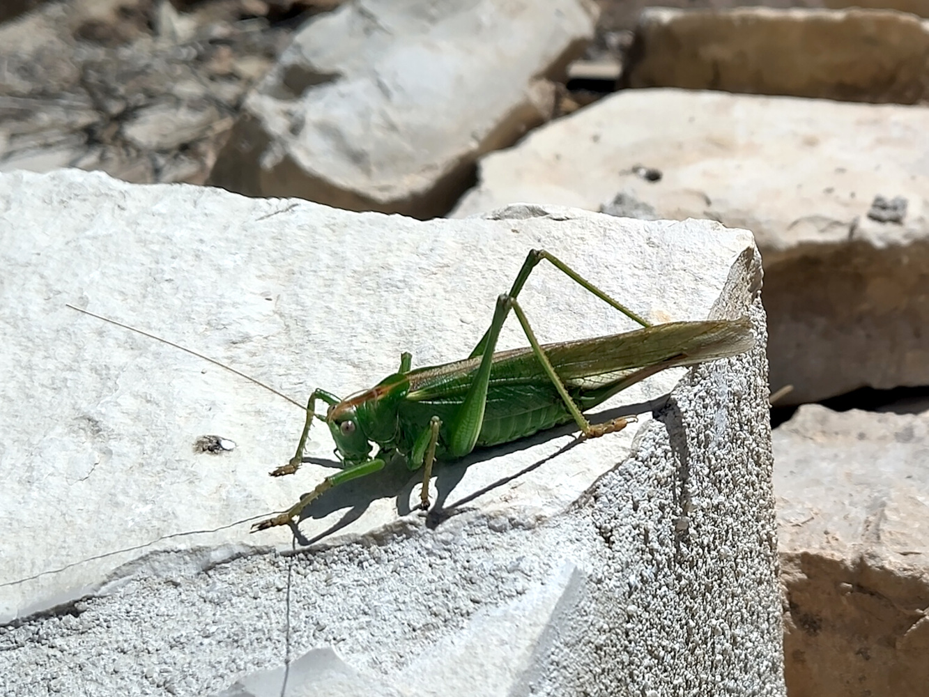 Soms zie je van die grote bidsprinkhanen, we hebben felgroene gezien, we hebben bruine gezien en zelfs een keer een rode, maar die was wat kleiner. Sprinkhanen zie je verder heel veel, van die kleine die in het gras zitten en wegspringen als je in de buurt komt. De kippen vinden ze ook geweldig. Ze jagen ze zelfs op af en toe, en proberen ze te achtervolgen om ze alsnog te vangen. Grappig gezicht.