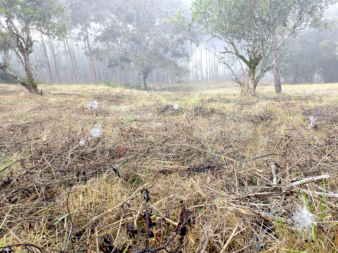 De herfst is zich voorzichtig aan het aankondigen. In de ochtend, als de zon nog niet is doorgebroken, is het heiig. Er hangt een dunne mist tussen de bomen. De dennen druppen van de dauw, onder de bomen is de weg nat. De spinnen die zich in het gras proberen schuil te houden zien nu dat hun normaal gesproken onzichtbare webben plotseling bijna fel oplichten. ’t Duurt niet zo lang, de zomer wint het nog, een uurtje nadat de zon is doorgebroken is de mist alweer weg en wordt het weer lekker warm.