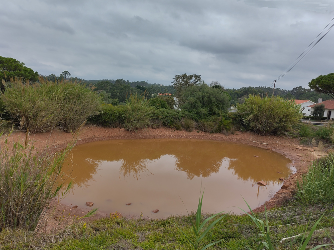 Net waar de weg door Casal da Marinha begint, bij de grote weg naar Caldas, ligt een lagune. Klinkt mooi, maar het is eigenlijk een klein meertje, misschien wel speciaal uitgegraven om water op te slaan. Het water is niet helder, het heeft de kleur van de klei eromheen. Het is kleiner dan normaal, want het is al zo lang droog en het heeft de afgelopen maanden maar mondjesmaat geregend, het peil is zeker een halve meter lager dan dat het in de regentijd is. Als het iemands watervoorraad is, is het eigenlijk wel prima, want voordat het echt helemaal leeg is duurt nog wel even en dan gaat het vast wel weer regenen. Als is er de komende week absoluut geen regen voorspeld.