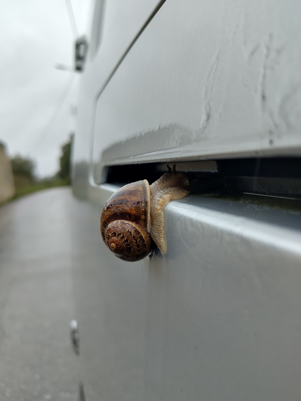 Het weer is wat minder aan het worden, dat wil zeggen, het kan zomaar flink regenen. Voor het gras dat we aan het inplanten zijn is dat prima. In het begin zijn het tere plantjes die heel veel water nodig hebben omdat ze niet of nauwelijks worteltjes hebben. De slakken komen en masse te voorschijn, sommige willen verhuizen, maar als je met een slakkengang verhuist dan gaat dat lang duren of je komt niet zo ver. Of je denkt, ‘Wegwezen’, ik neem wel een lift en probeert in de auto te kruipen in de hoop dat die ergens heen gaat waar het weer wat mooier is.